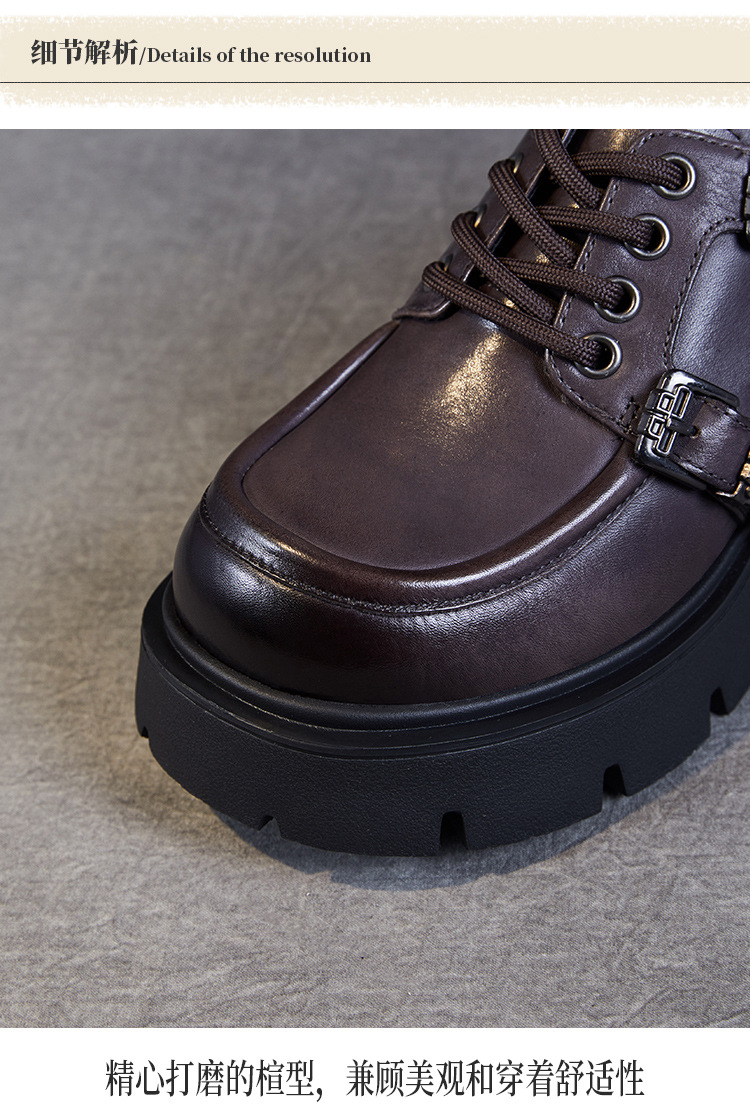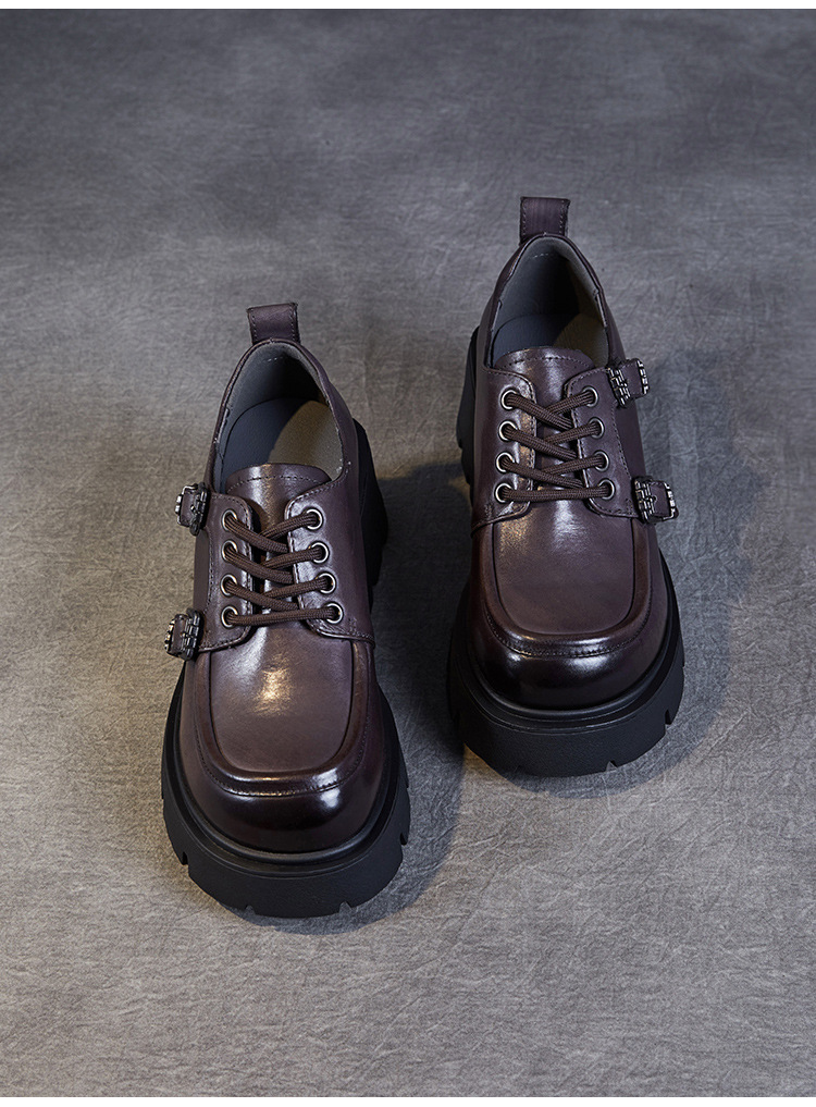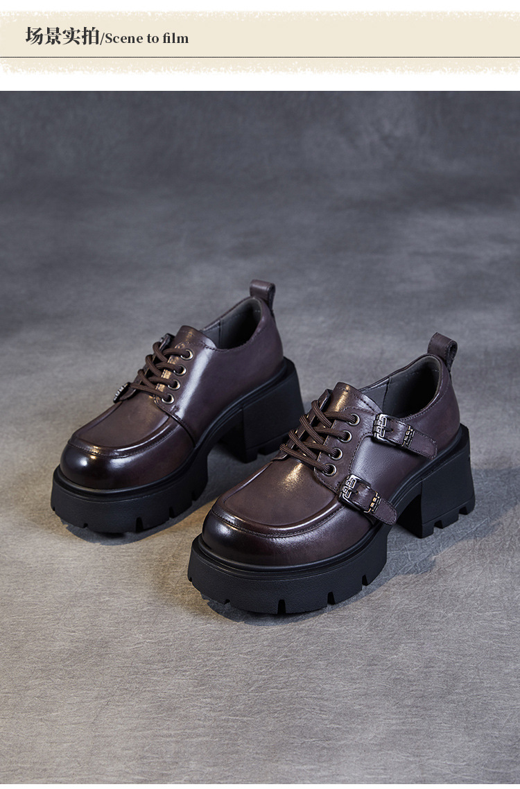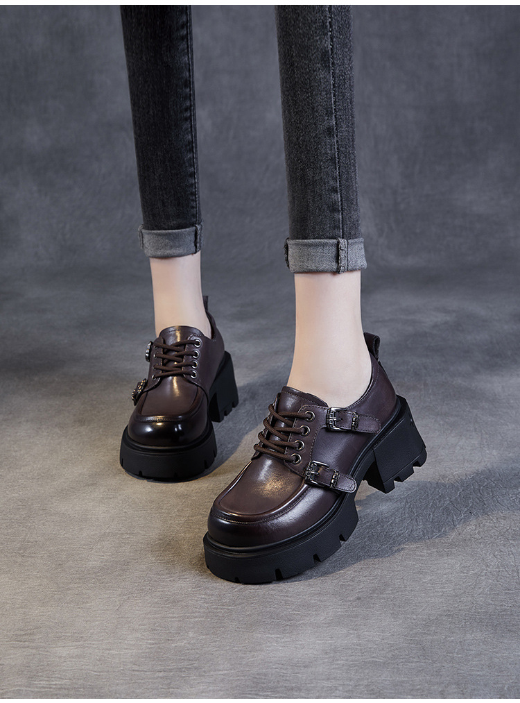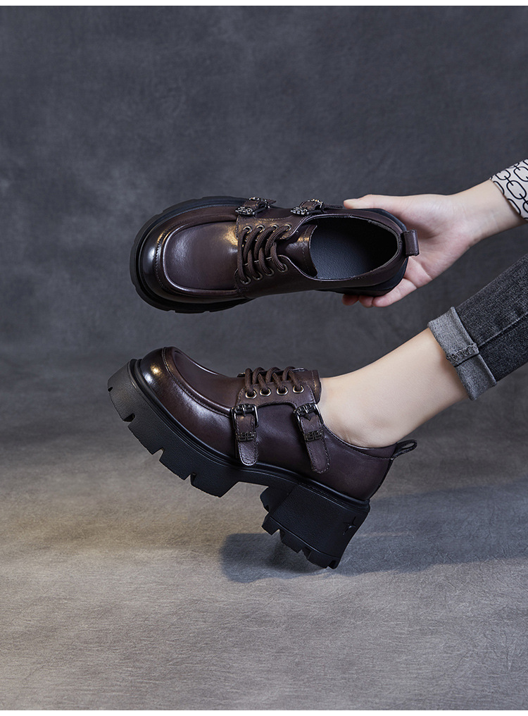2024 봄과 가을 새로운 리얼 벨트 버클 레이스 업 두꺼운 바닥 Chunky Heel Jk Loafers 여성용 하이힐 영국 가죽 신발 여성