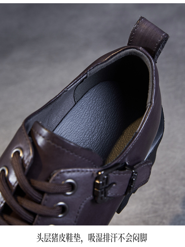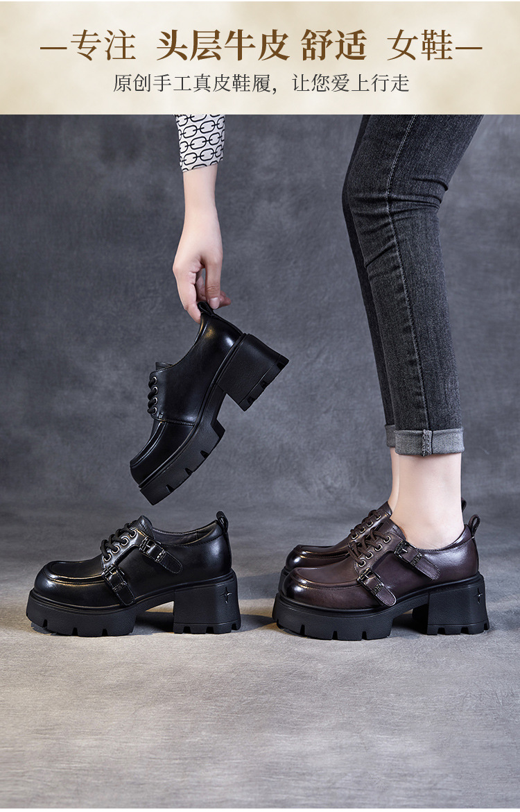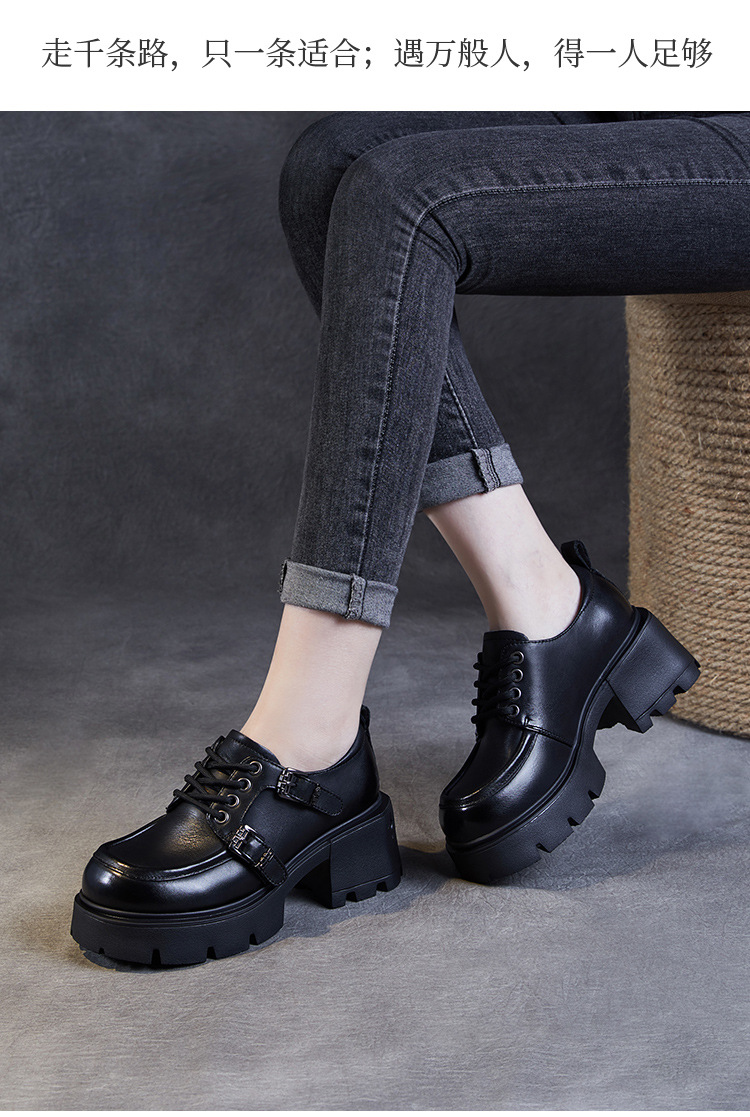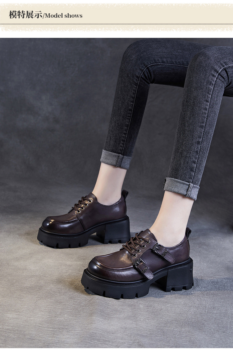 2024 봄과 가을 새로운 리얼 벨트 버클 레이스 업 두꺼운 바닥 Chunky Heel Jk Loafers 여성용 하이힐 영국 가죽 신발 여성스토어 가기
