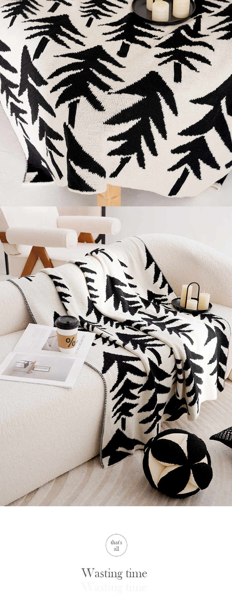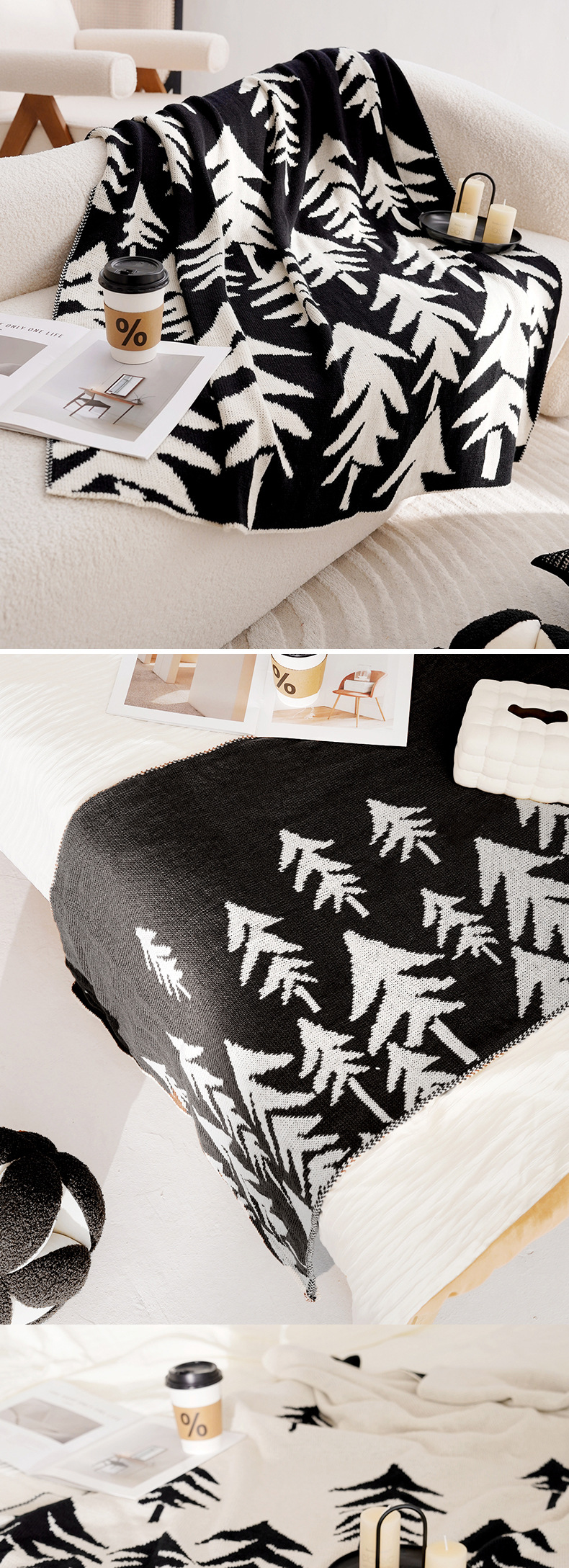 라이트 럭셔리 숲 고급 블랙 니트 담요 소파 에어컨 담요 낮잠 담요 유명한 침대 침대 끝 수건 담요스토어 가기