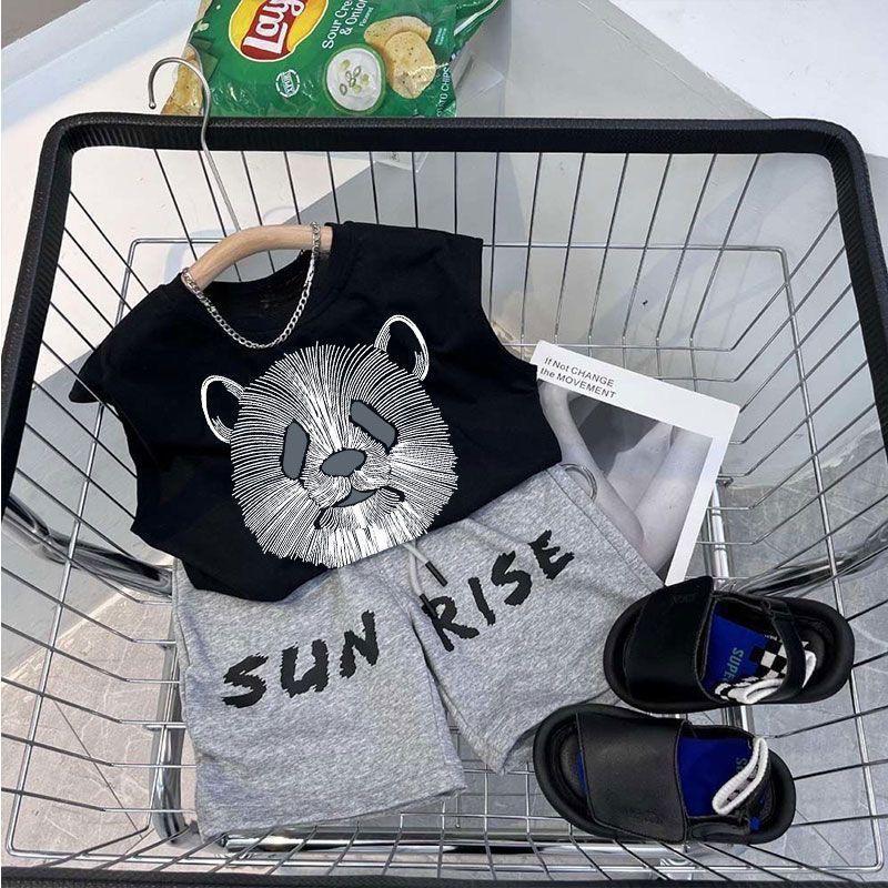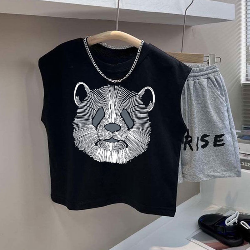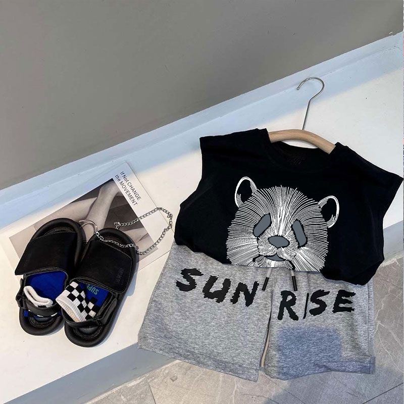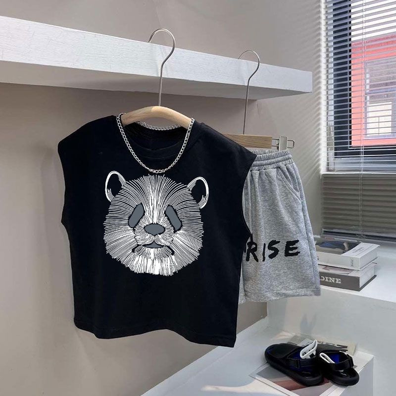 소년 검은 조끼 여름 얇은 어린이 서양식 사이버 연예인 반바지 세트 여름 새 소년 캐주얼 스포츠 바지