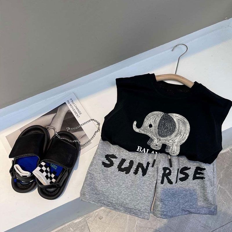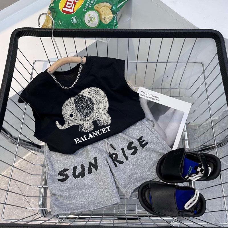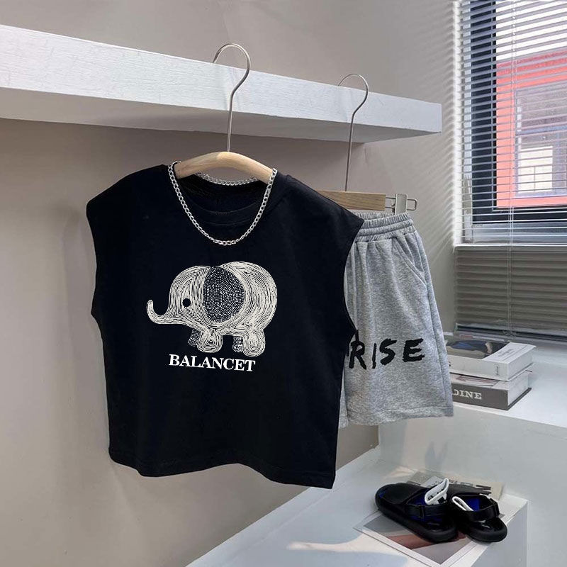 소년 검은 조끼 여름 얇은 어린이 서양식 사이버 연예인 반바지 세트 여름 새 소년 캐주얼 스포츠 바지스토어 가기