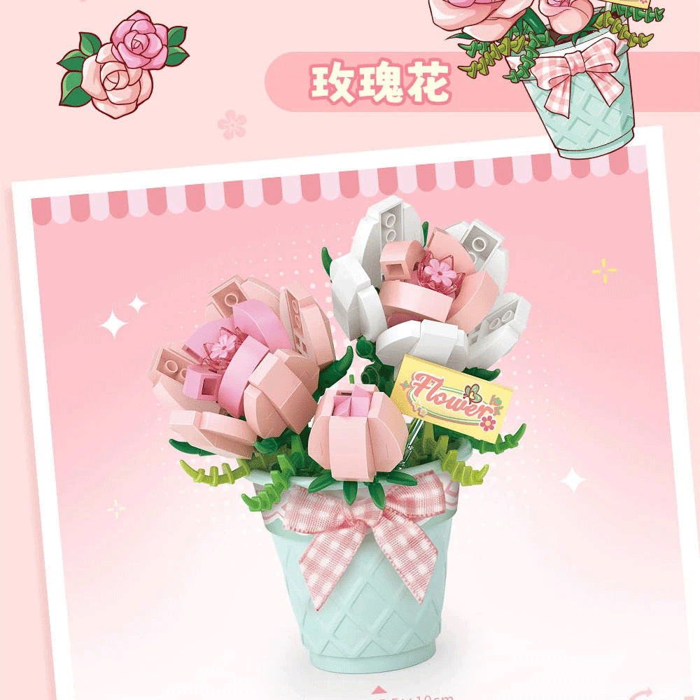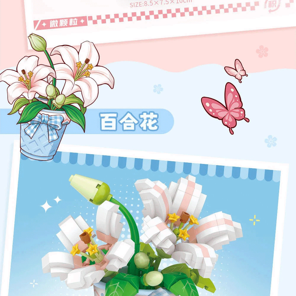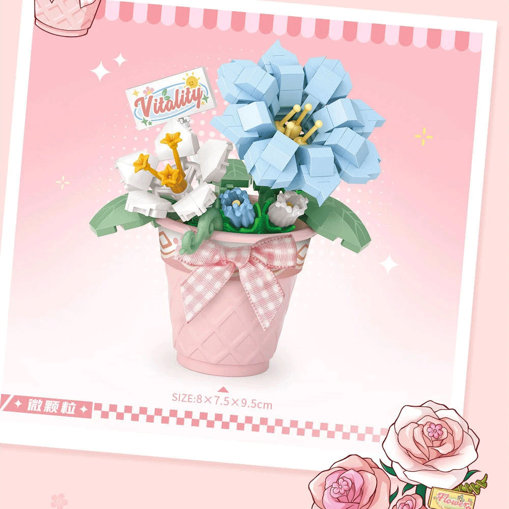 Loz 미세 입자 8831-8842 육체 화분 빌딩 블록 꽃 데스크탑 장식품 생일 선물 조립 된 빌딩 블록