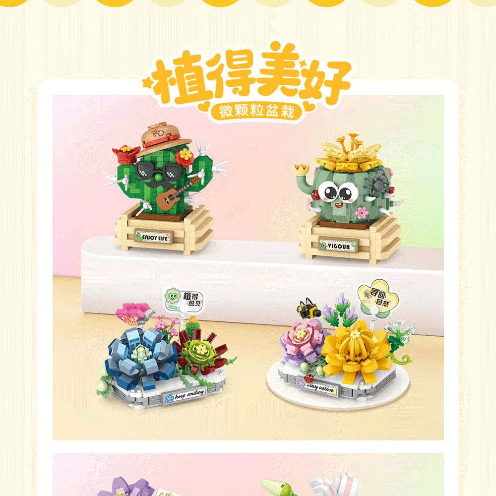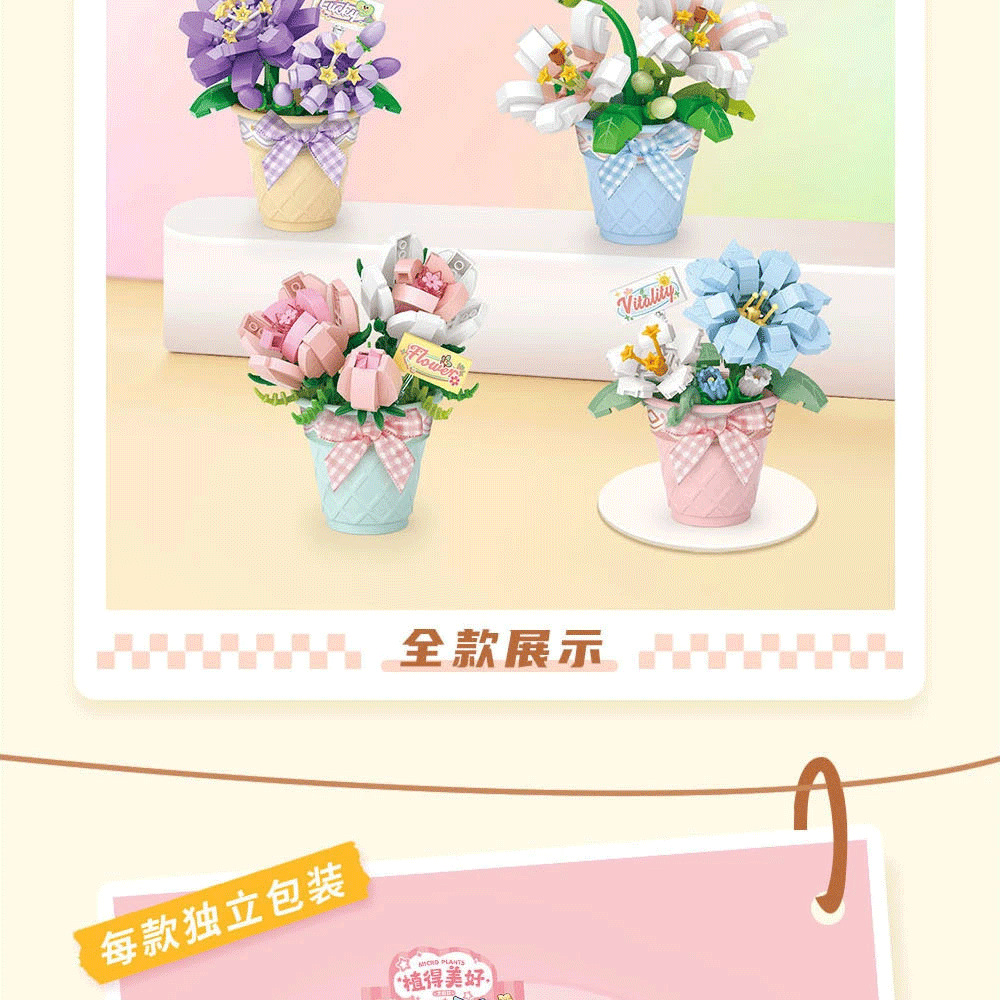 Loz 미세 입자 8831-8842 육체 화분 빌딩 블록 꽃 데스크탑 장식품 생일 선물 조립 된 빌딩 블록스토어 가기