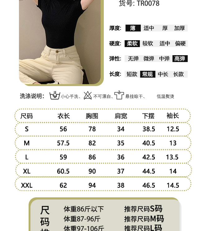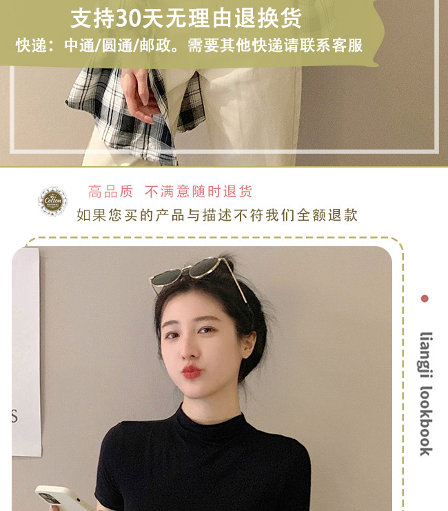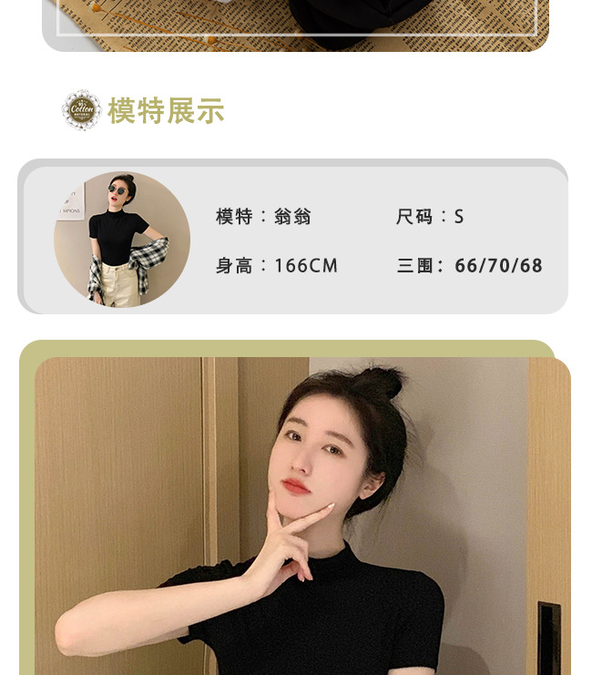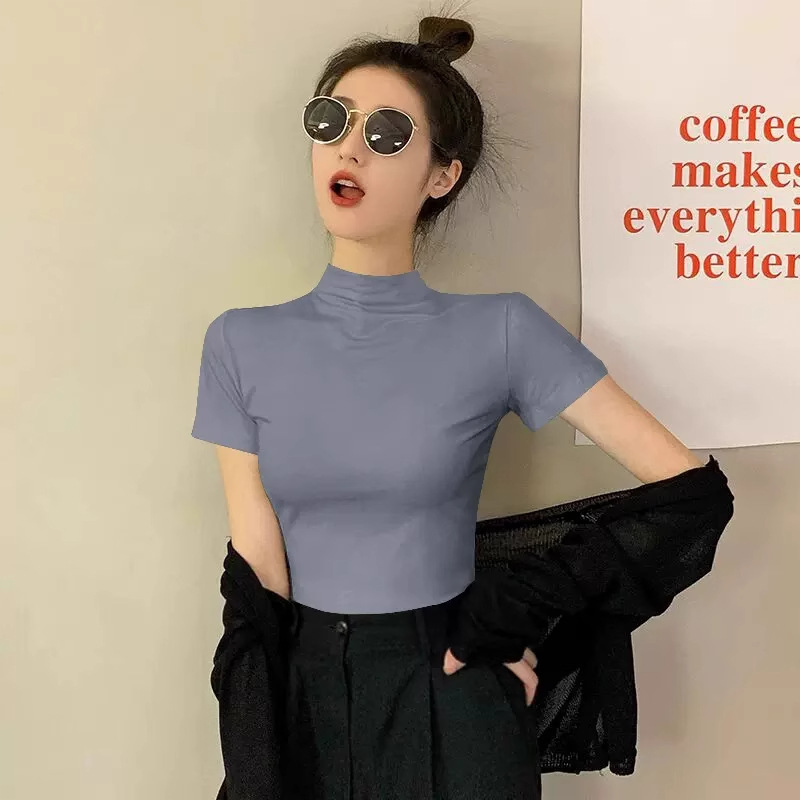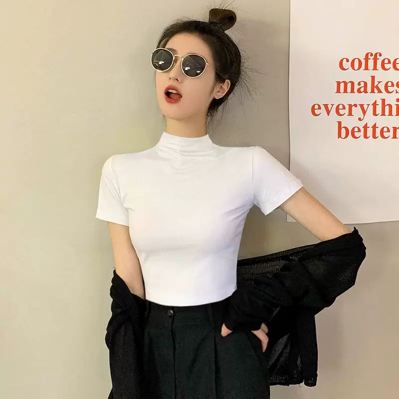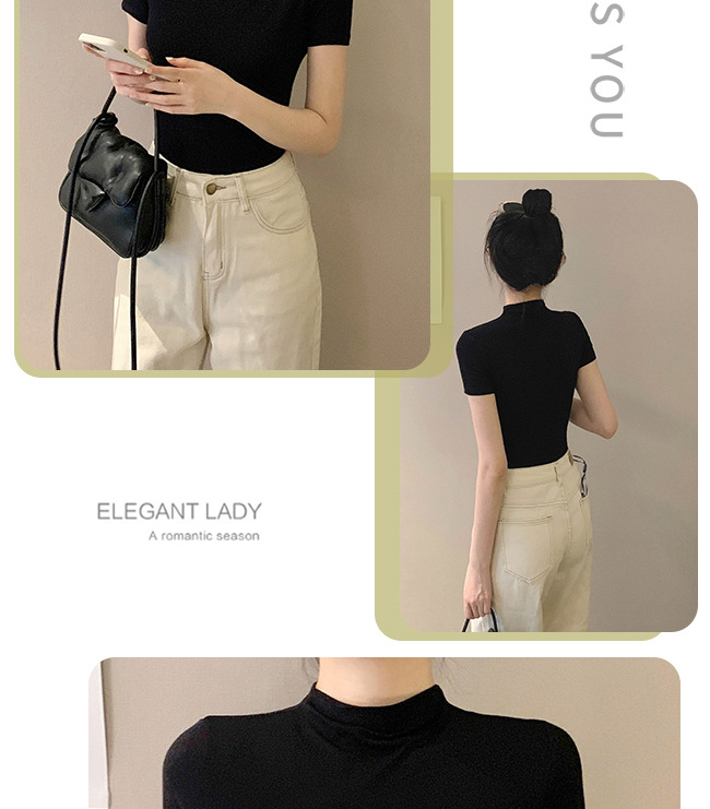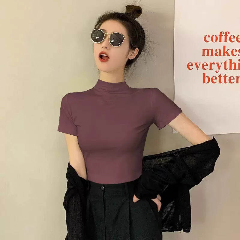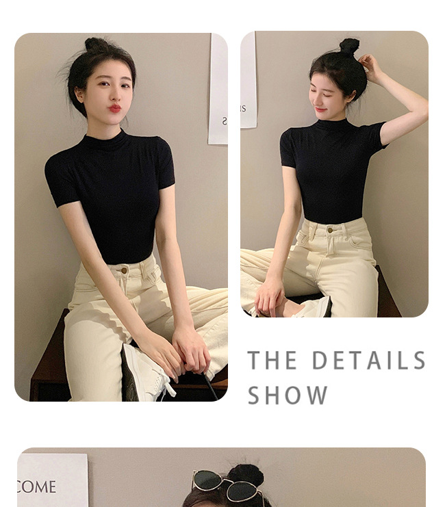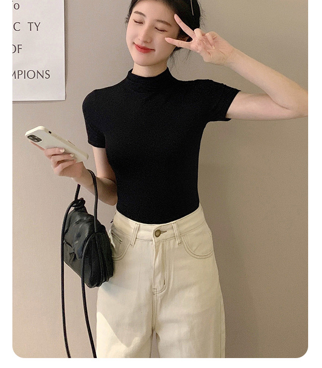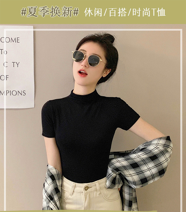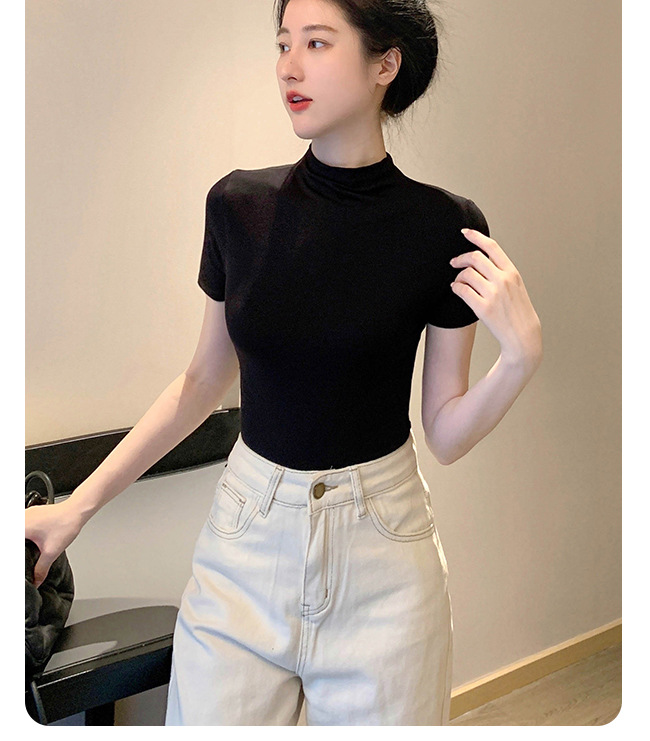 모달 블랙 하프 하이 넥 반소매 티셔츠 여성용 봄과 여름 2024 아이스 실크 미드 넥 탑 타이트한 반소매 베이스 셔츠스토어 가기