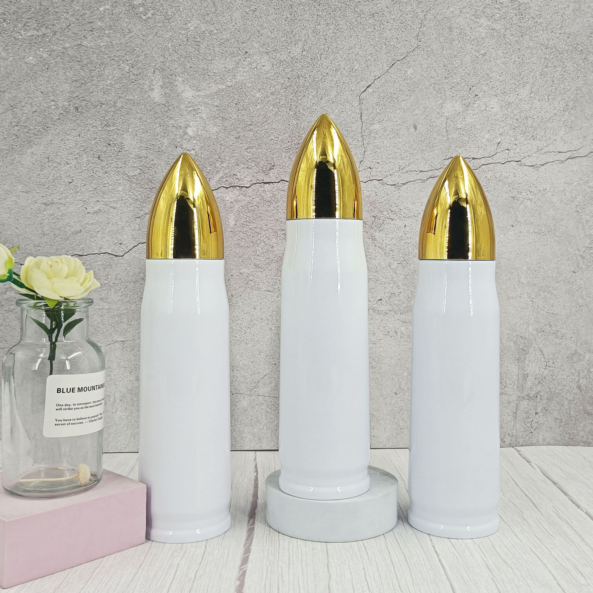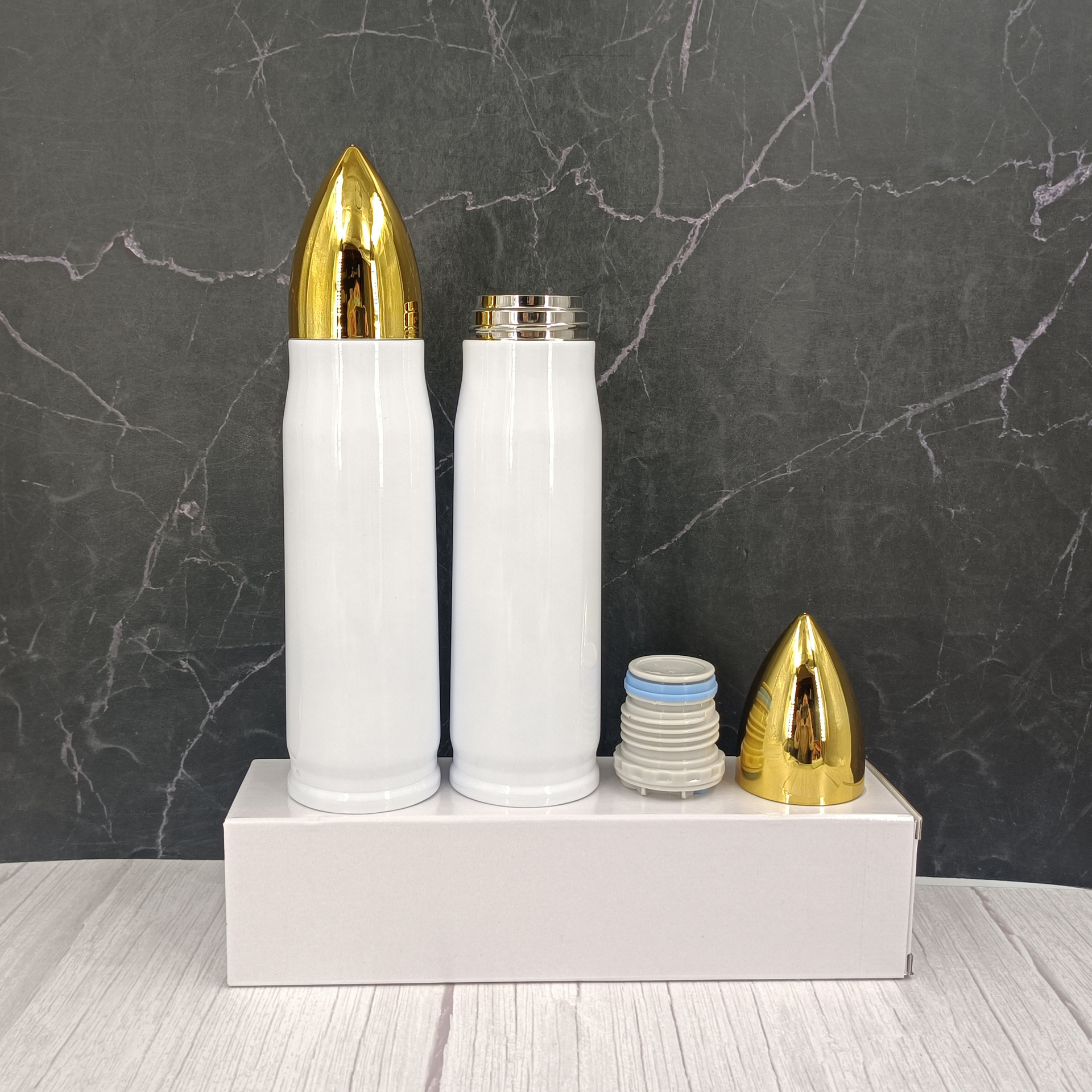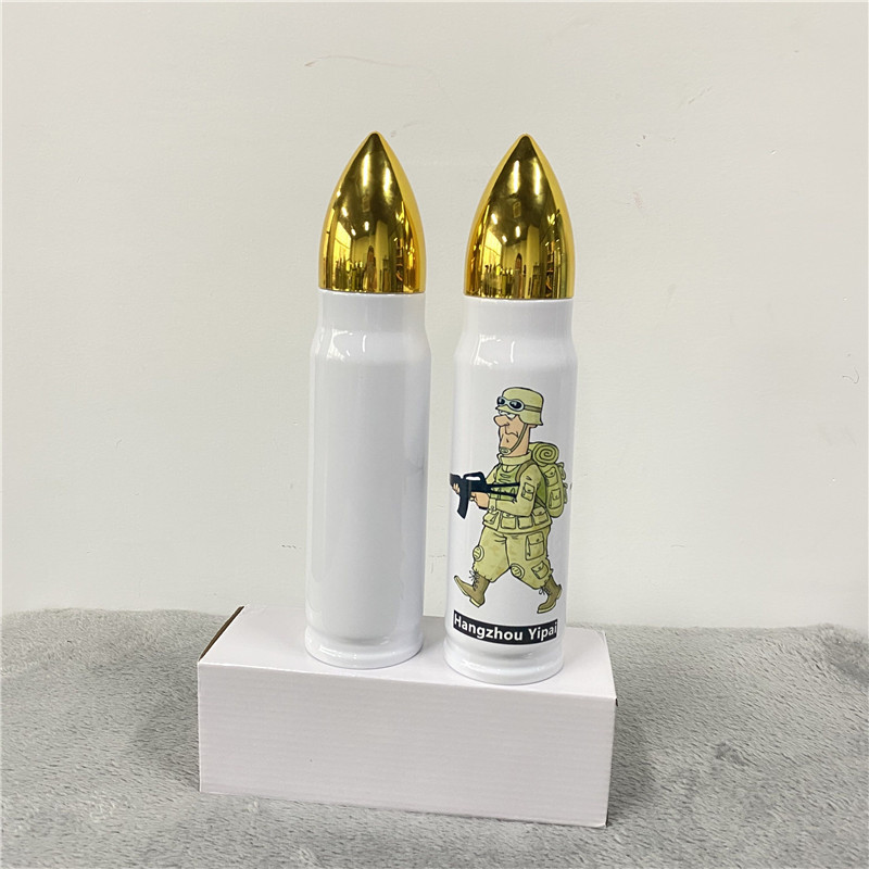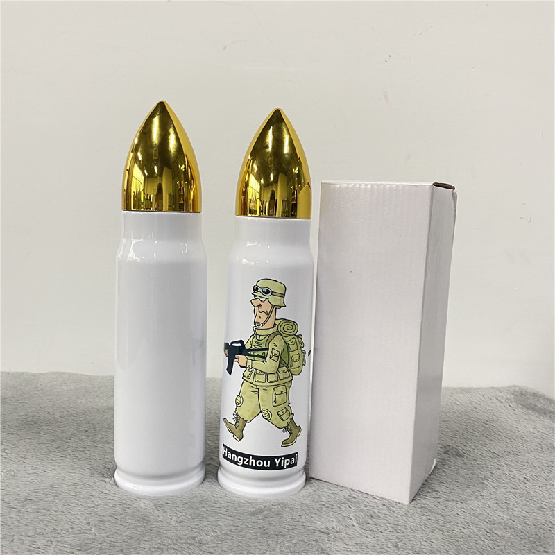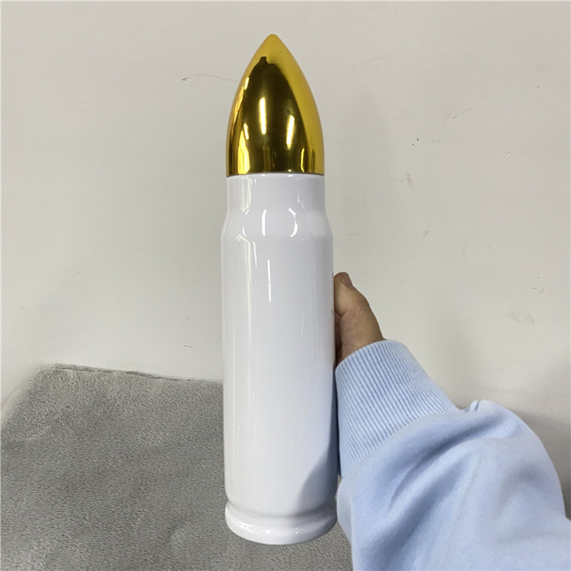 500ml 흰색 승화 열 전달 총알 스테인레스 스틸 컵 스트레이트 컵 보온병 컵 DIY 총 총알 컵