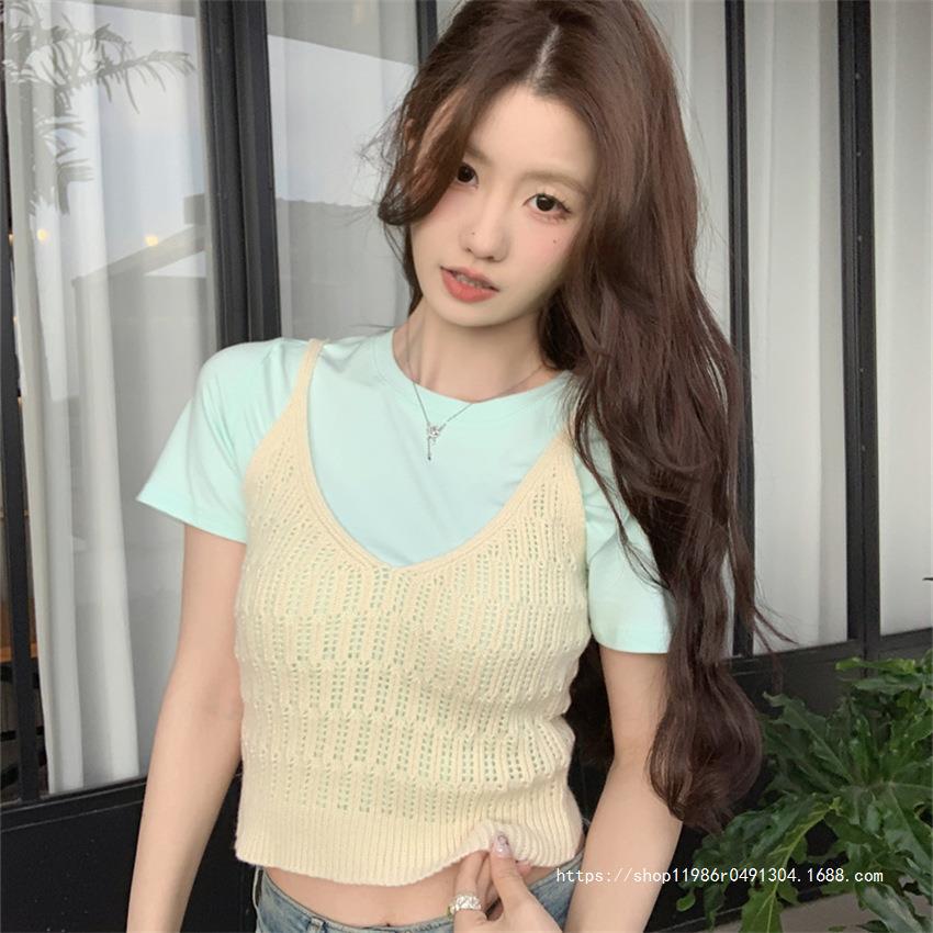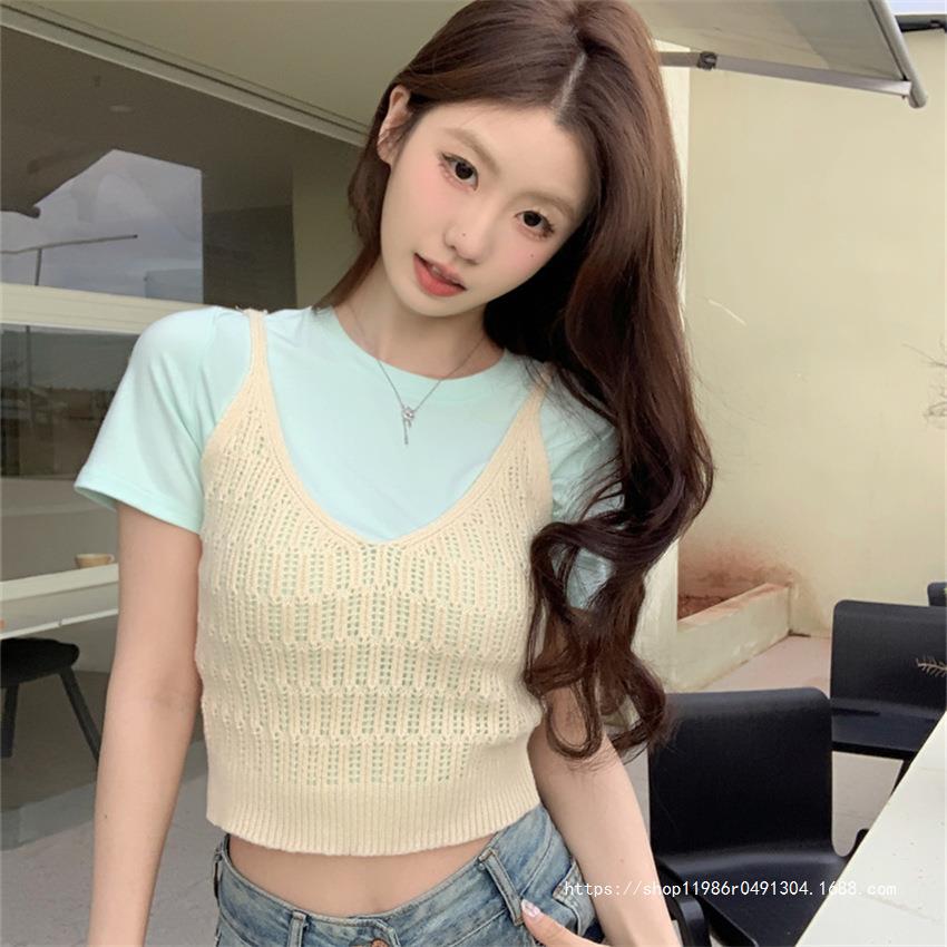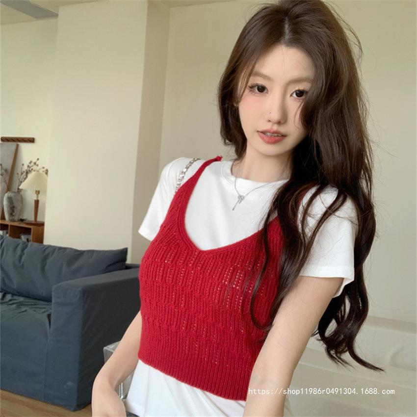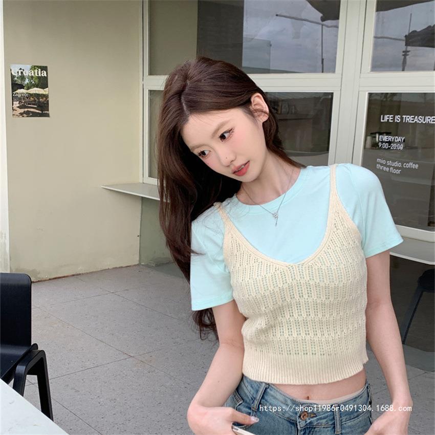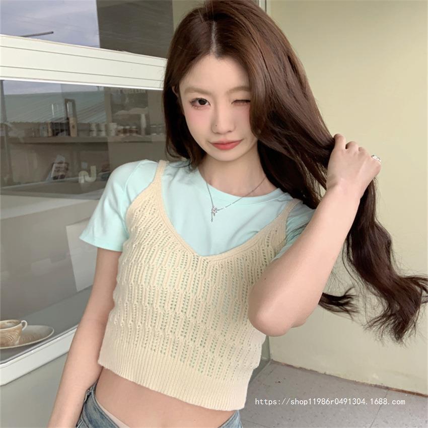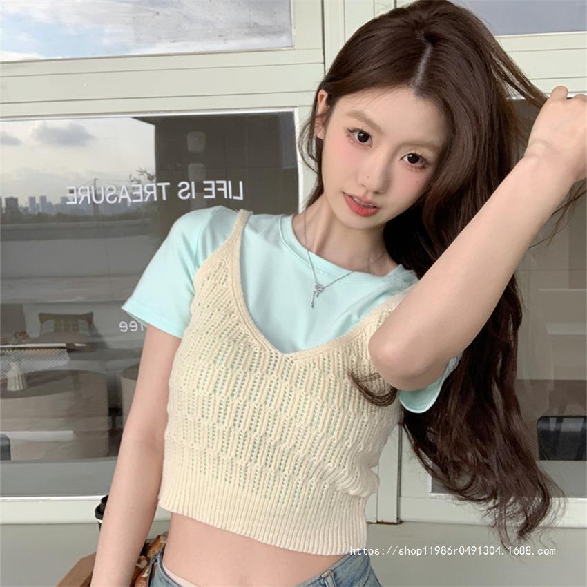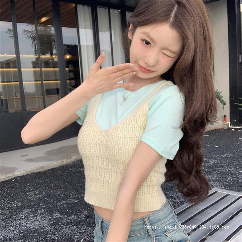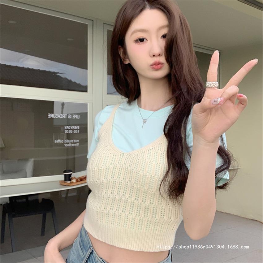 여성 여름 새로운 섹시한 높은 허리 배꼽 노출 짧은 민소매 탑 작은 할로우 크로 셰 뜨개질 스파이스 카미 솔 조끼