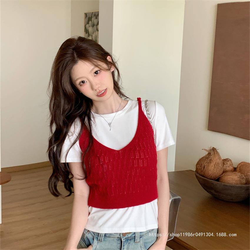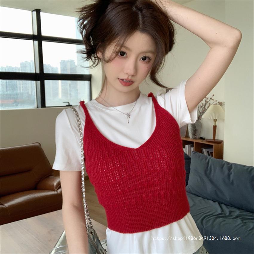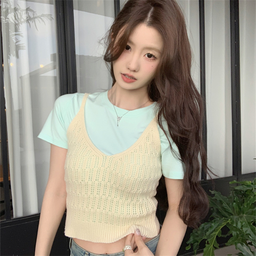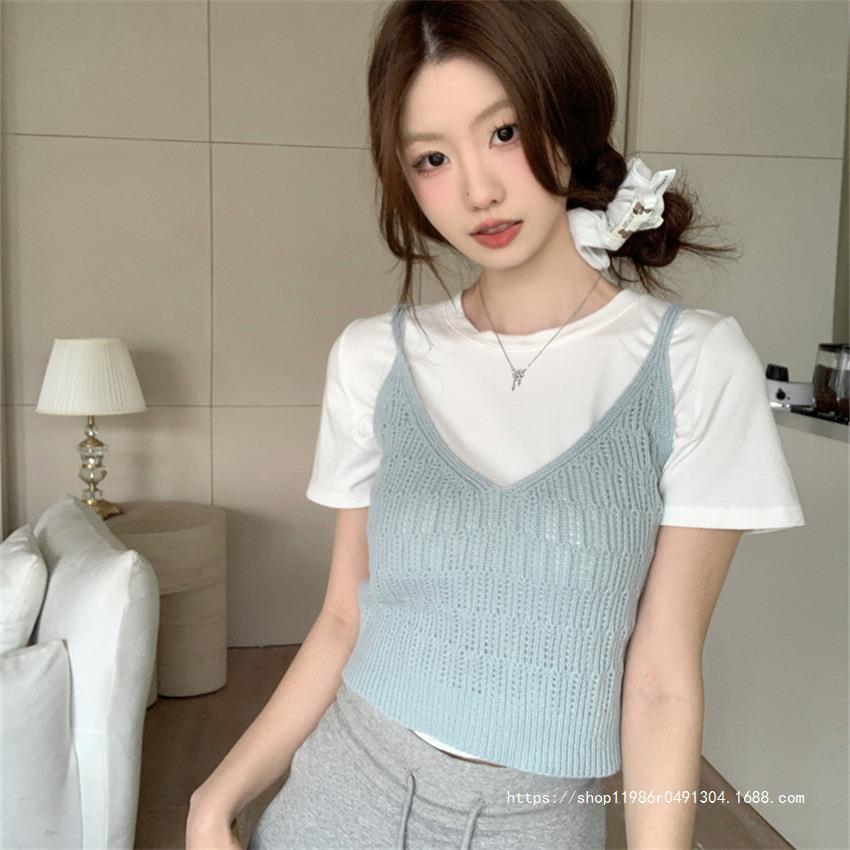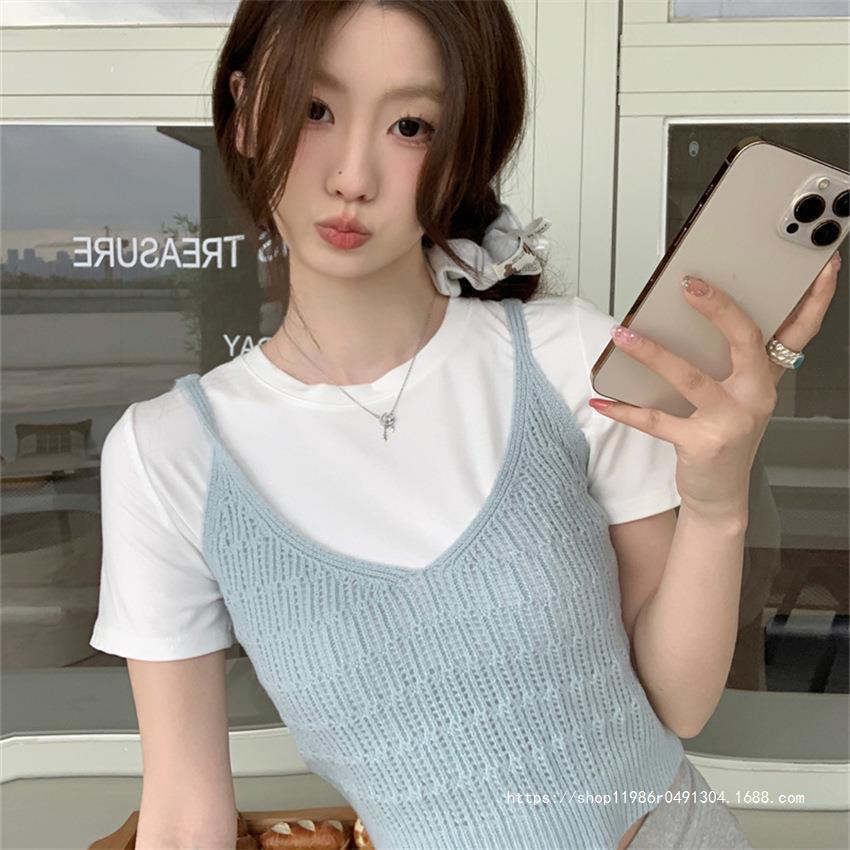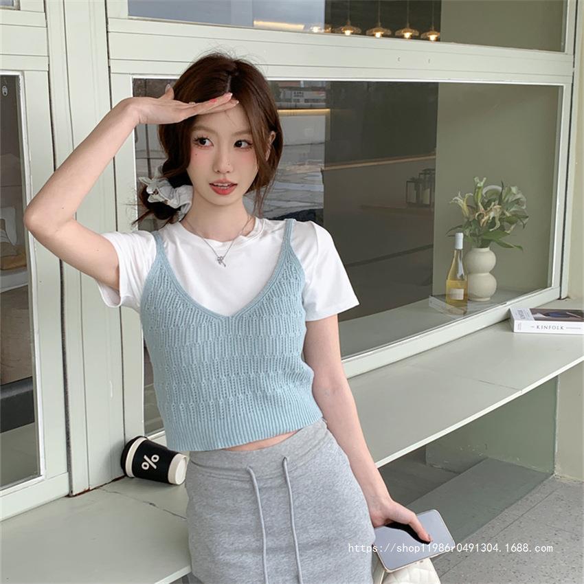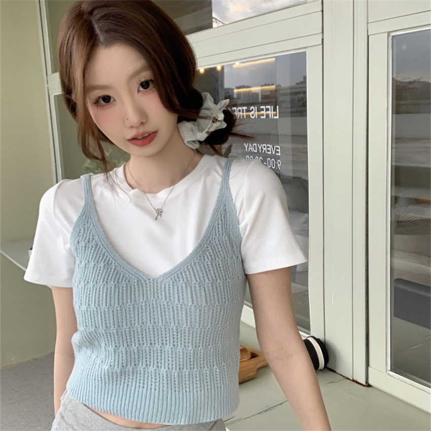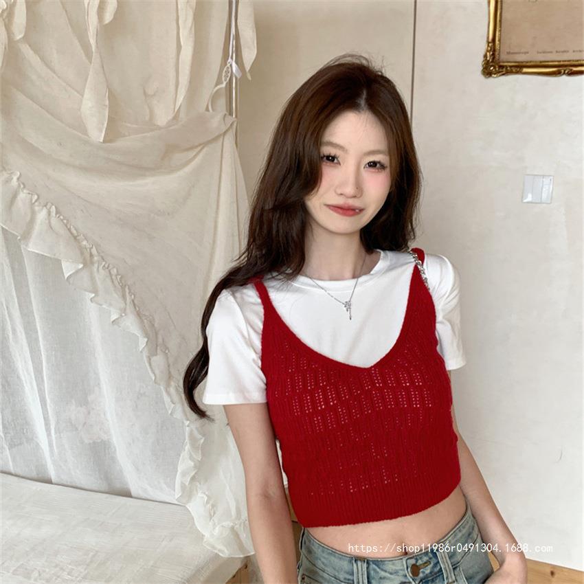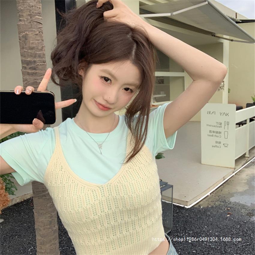여성 여름 새로운 섹시한 높은 허리 배꼽 노출 짧은 민소매 탑 작은 할로우 크로 셰 뜨개질 스파이스 카미 솔 조끼