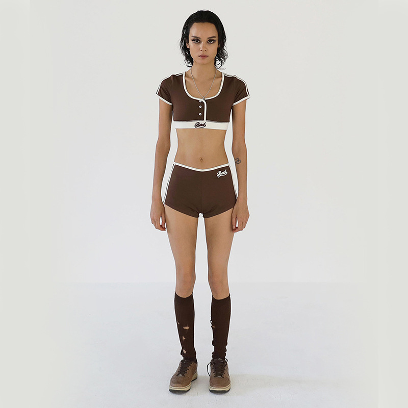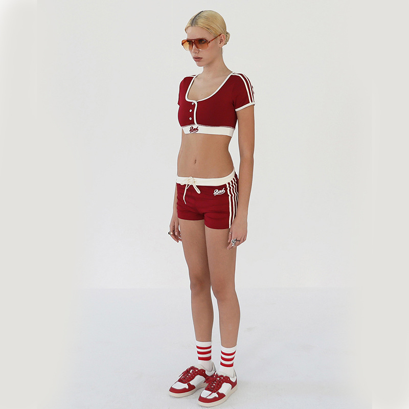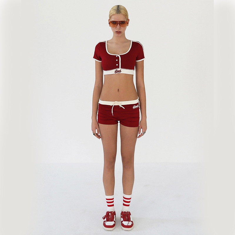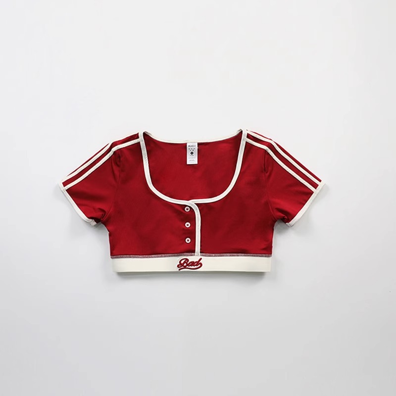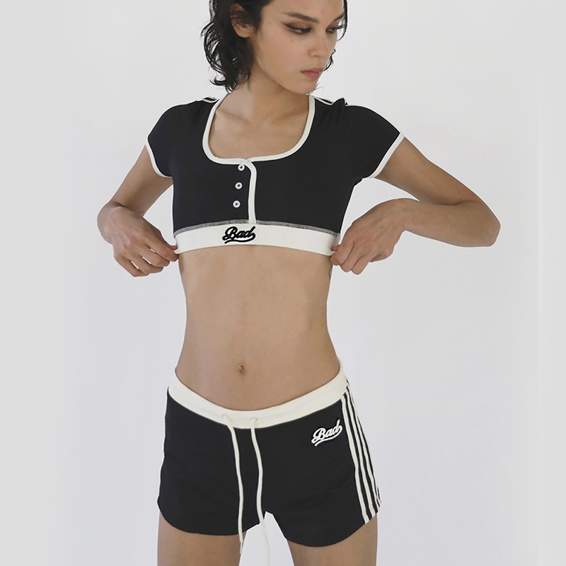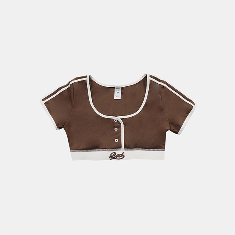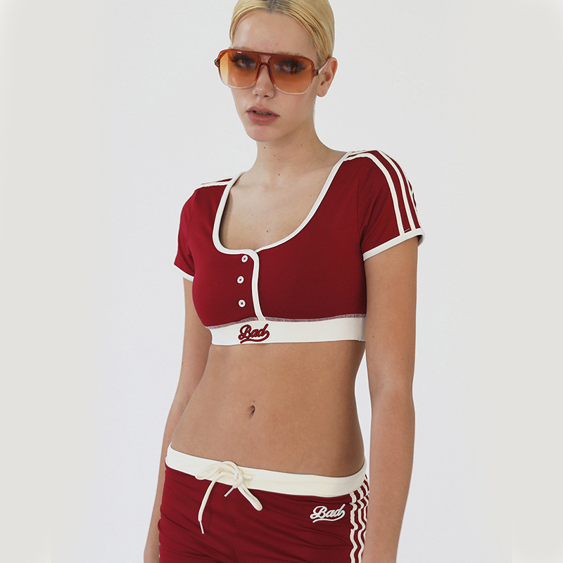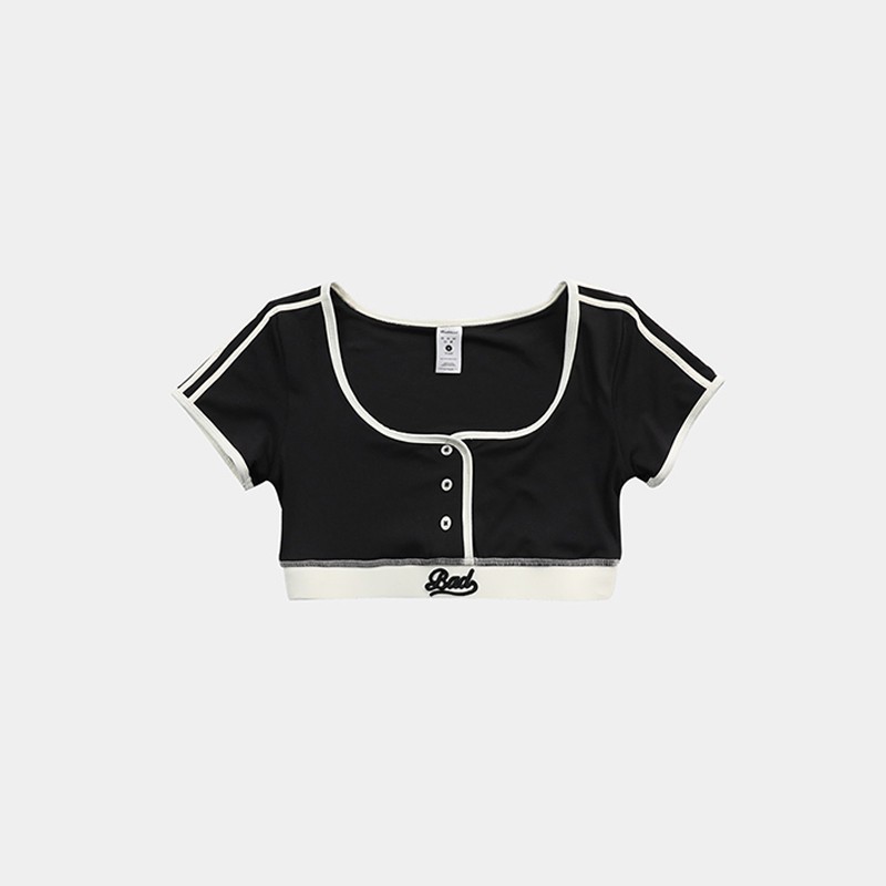 한국 badblood bcac 시리즈 아메리칸 핫걸 짧은 티셔츠 여성 반팔 U 넥 틈새 스포츠 탑 트렌디스토어 가기
