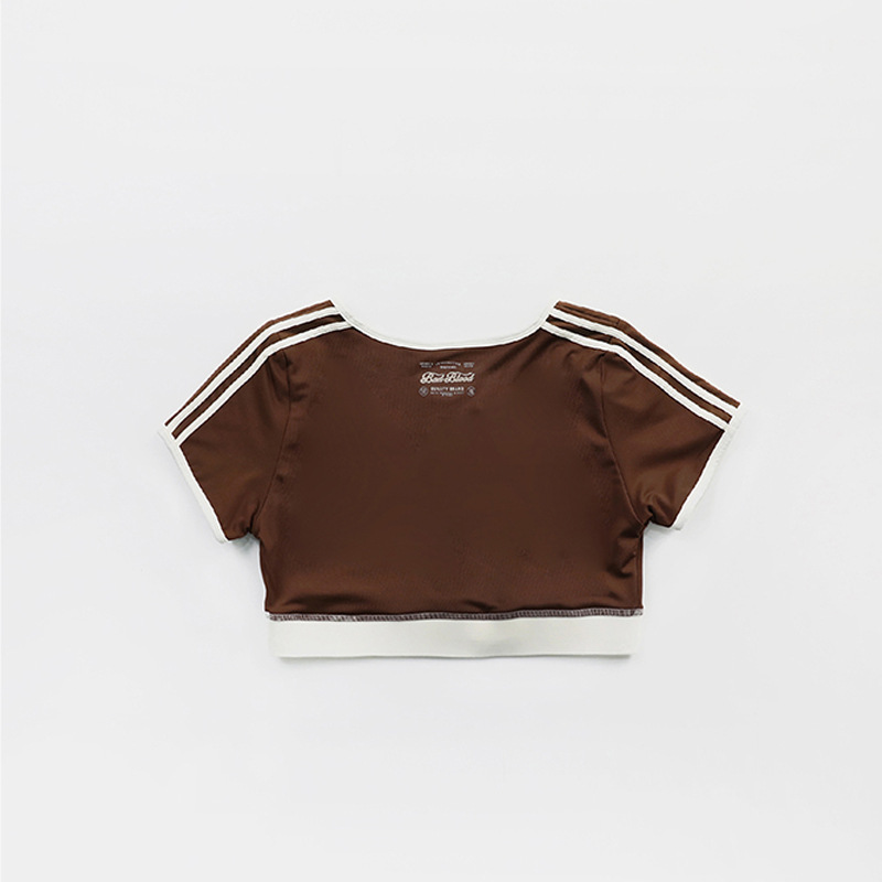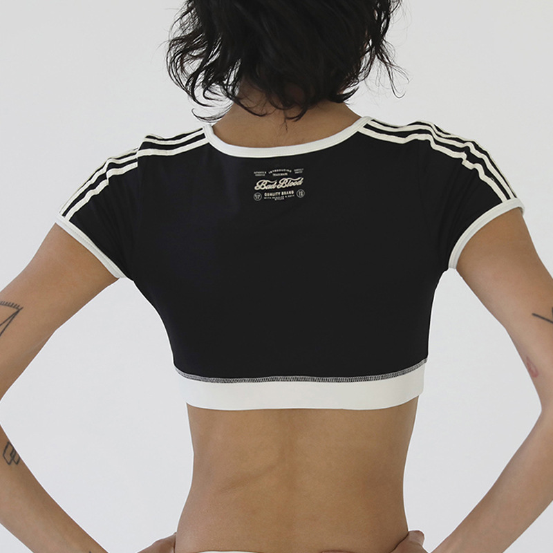 한국 badblood bcac 시리즈 아메리칸 핫걸 짧은 티셔츠 여성 반팔 U 넥 틈새 스포츠 탑 트렌디