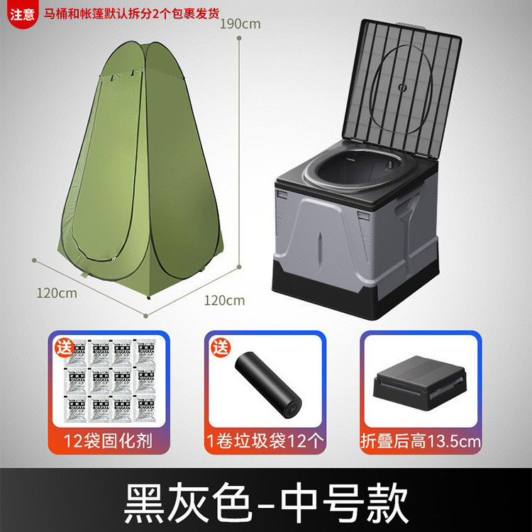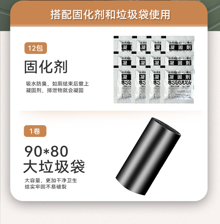 • 라운드 카키 대형 화장실 쓰레기 봉투 * 1 롤 응고제 * 12 가방 텐트