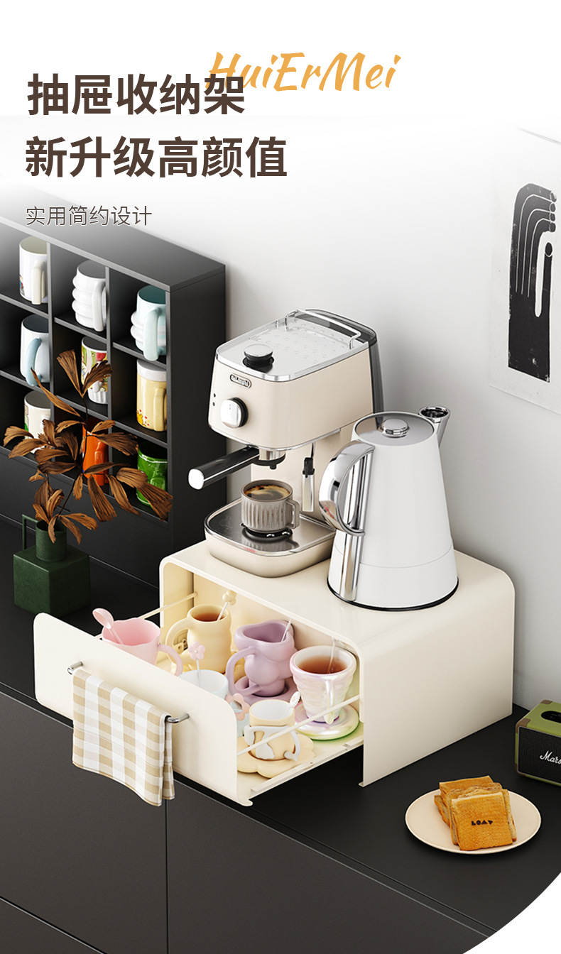 맞춤형 서랍형 수납선반, 가벼운 럭셔리 스타일 커피머신 베이스, 방진 애프터눈 티컵, 티백 수납선반스토어 가기