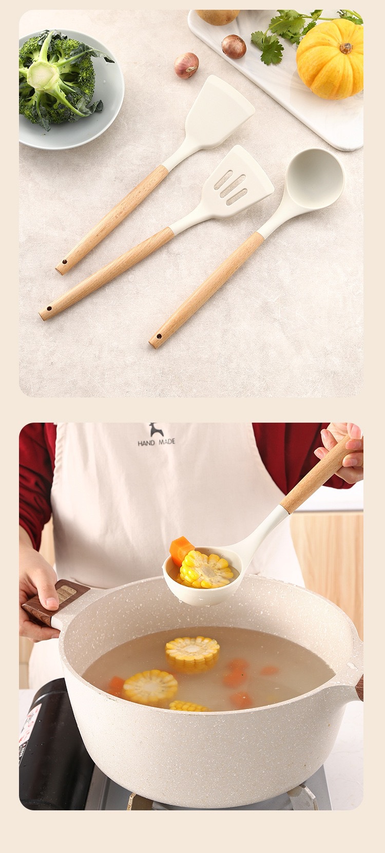 국경 나무 손잡이 실리콘 주걱 주방 3 개 세트 실리콘 주걱 세트 도구 주방 수프 숟가락 요리 주방용품