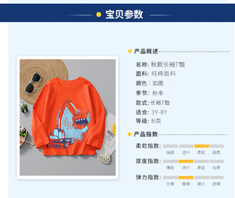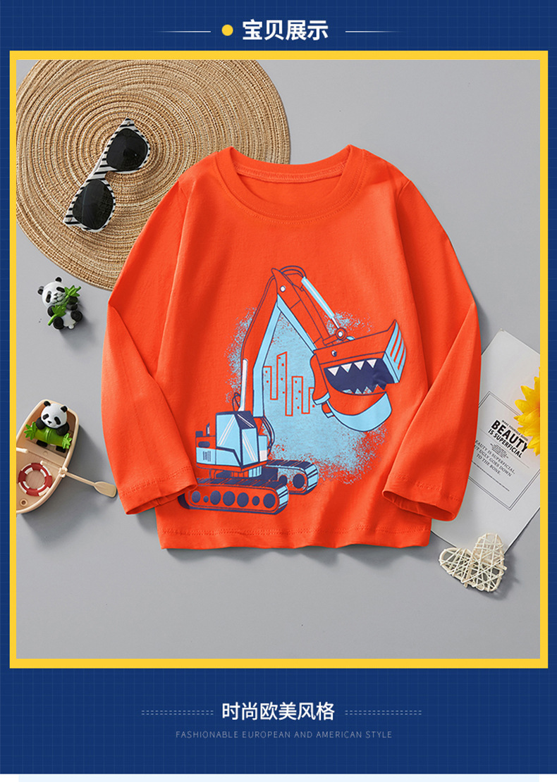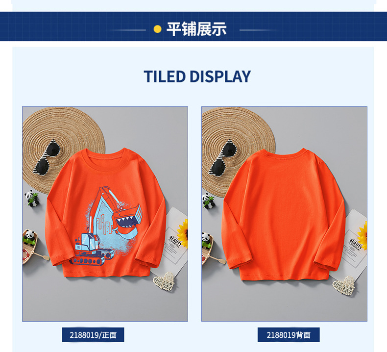 유럽과 미국의 아동복 긴 소매 2024 어린이 티셔츠 소년면 만화 패턴 봄과 가을 긴 소매 공장 도매스토어 가기