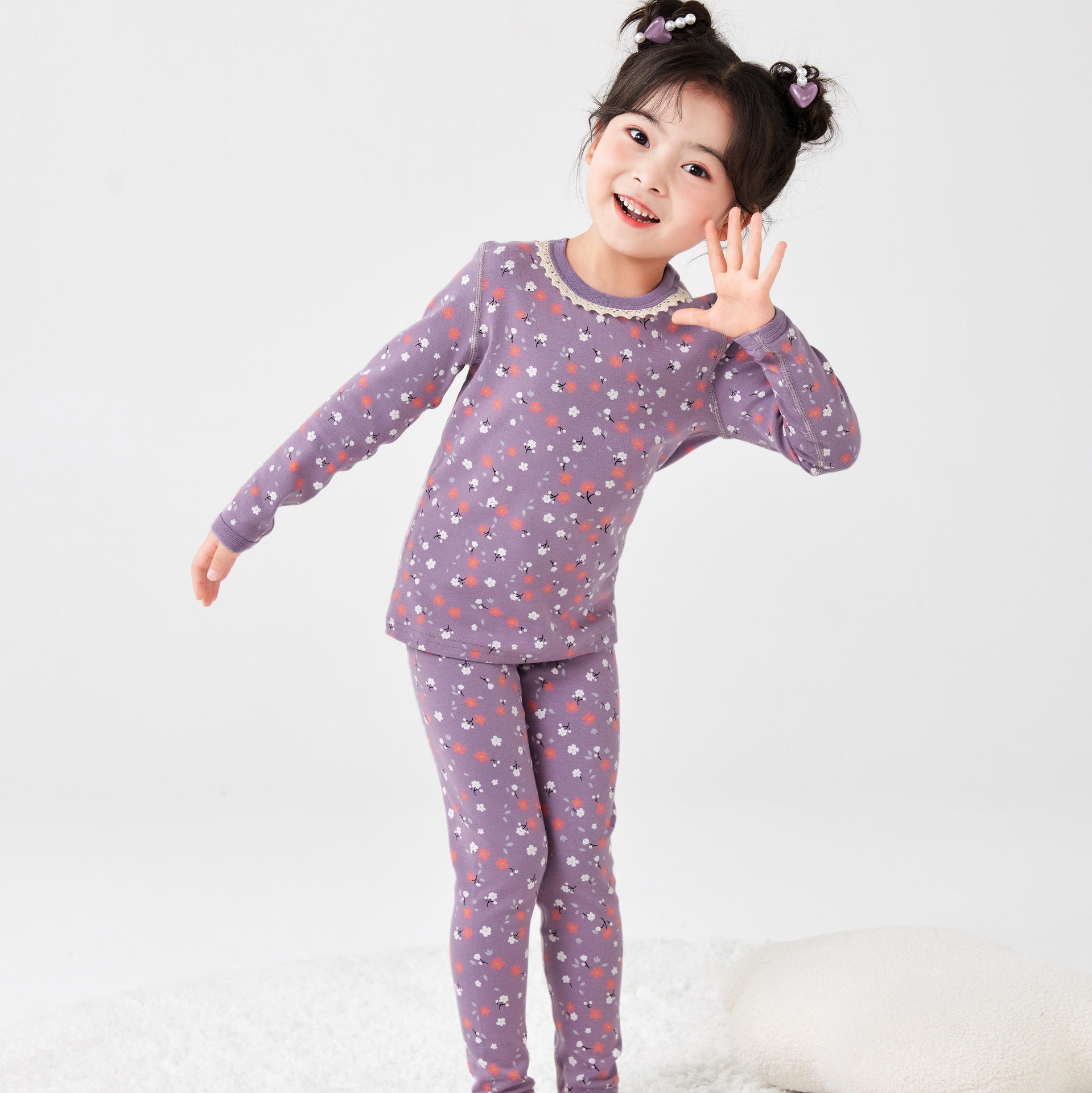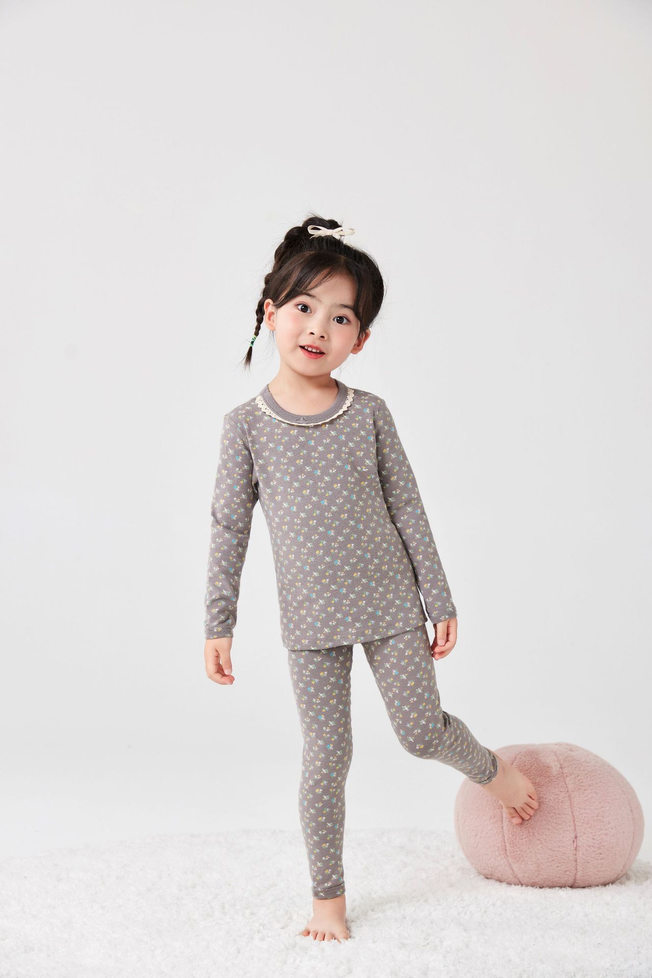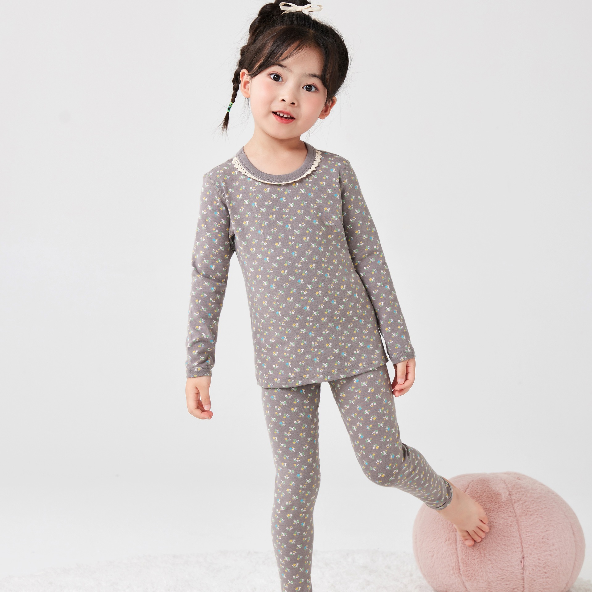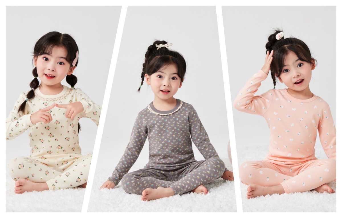 작은 꽃무늬 여아 가을옷 가을바지 무봉제 큰아이 보온 내의 세트 도매 순면 홈웨어 항균 흡습