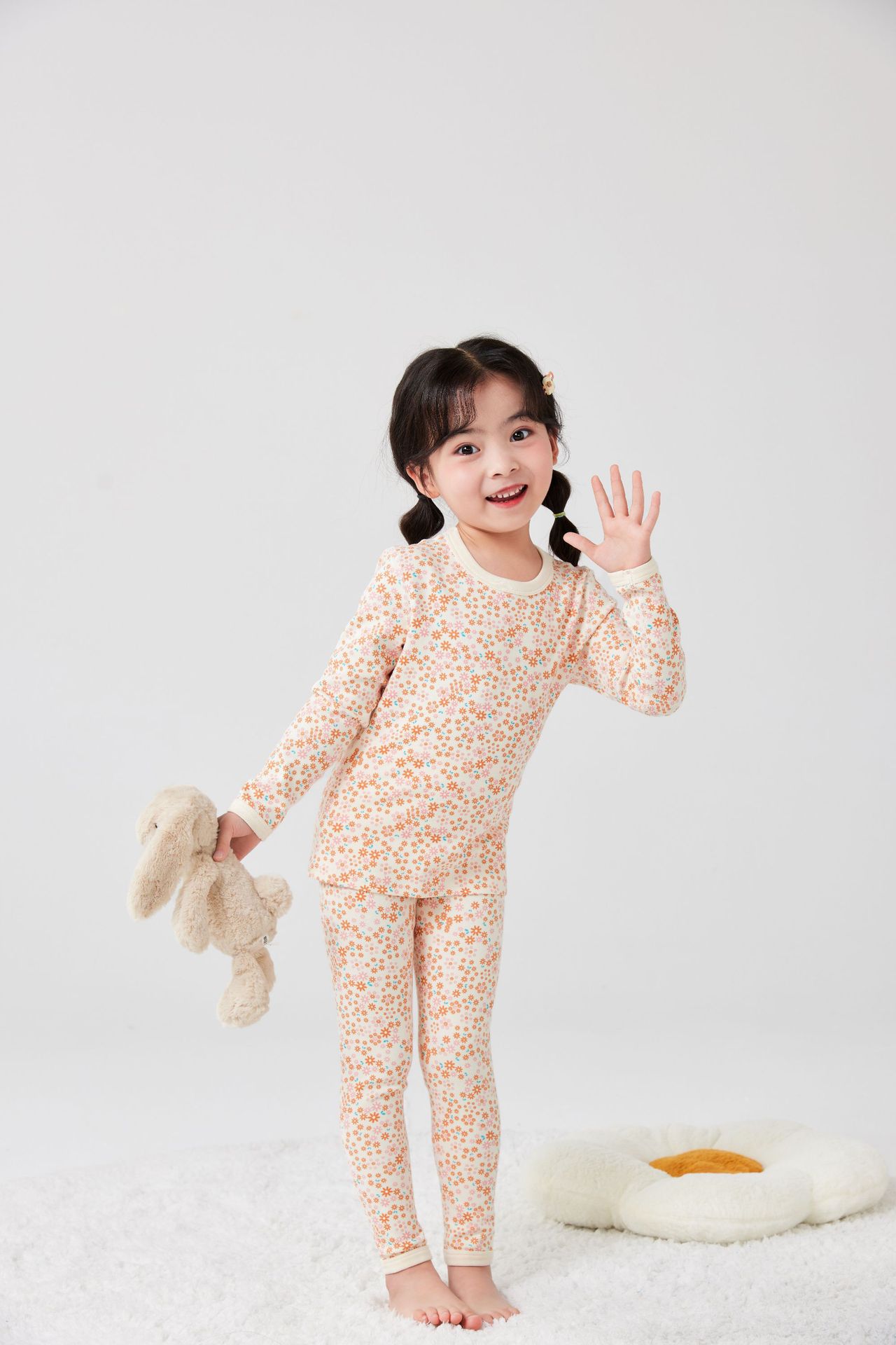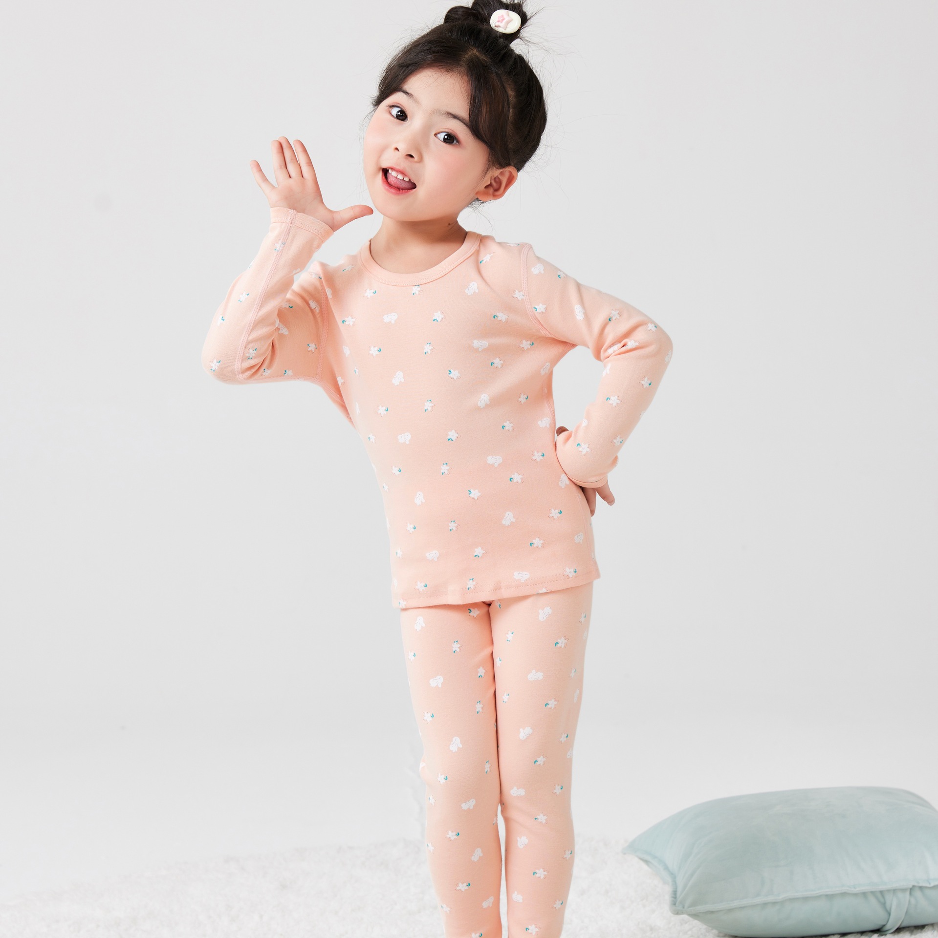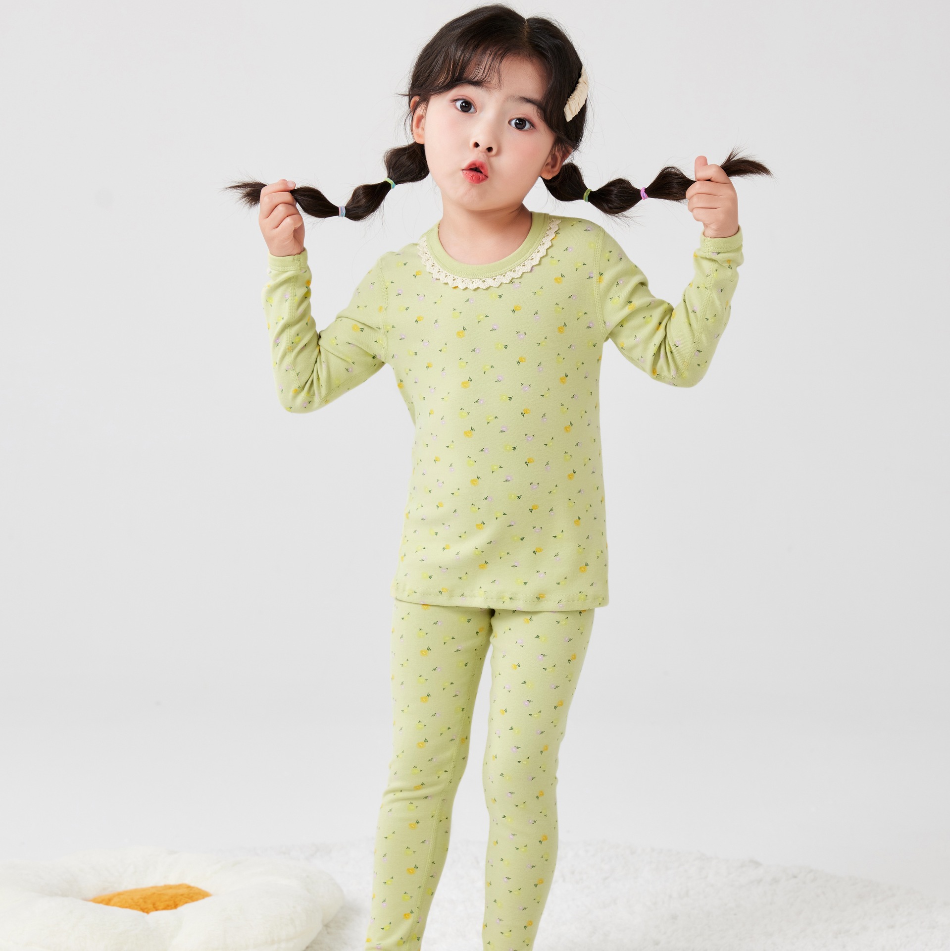 작은 꽃무늬 여아 가을옷 가을바지 무봉제 큰아이 보온 내의 세트 도매 순면 홈웨어 항균 흡습