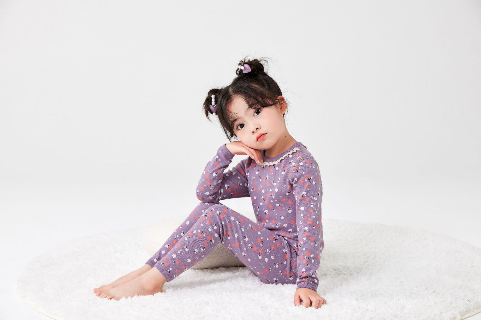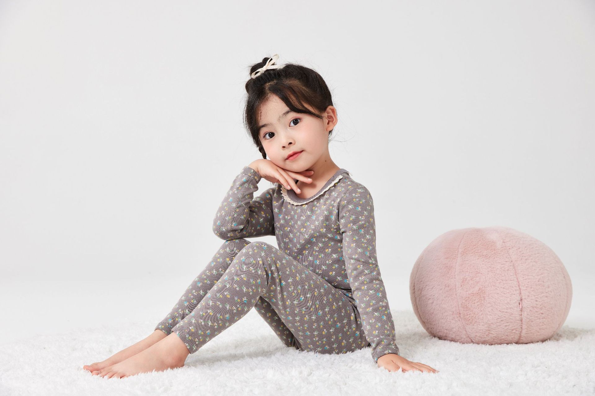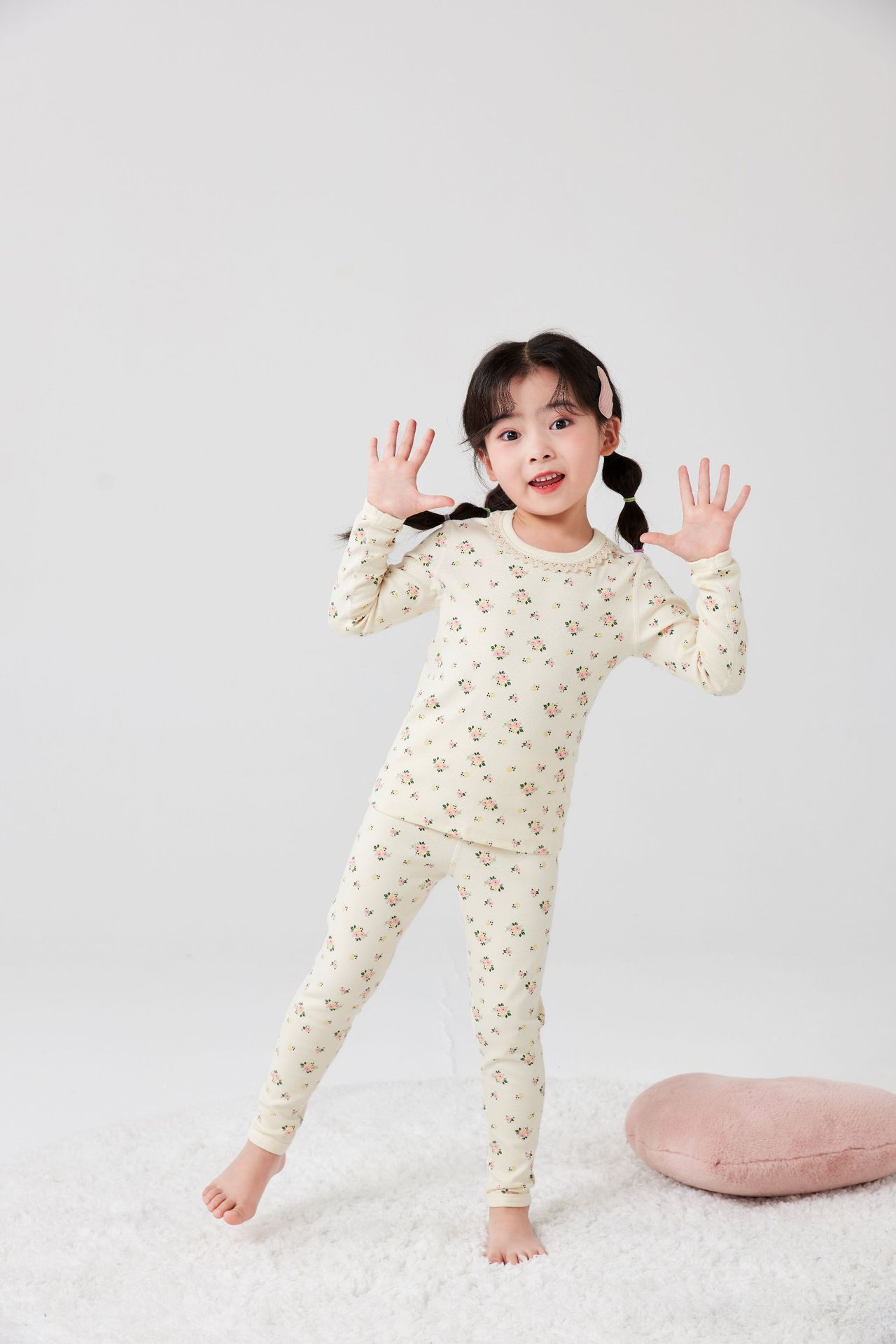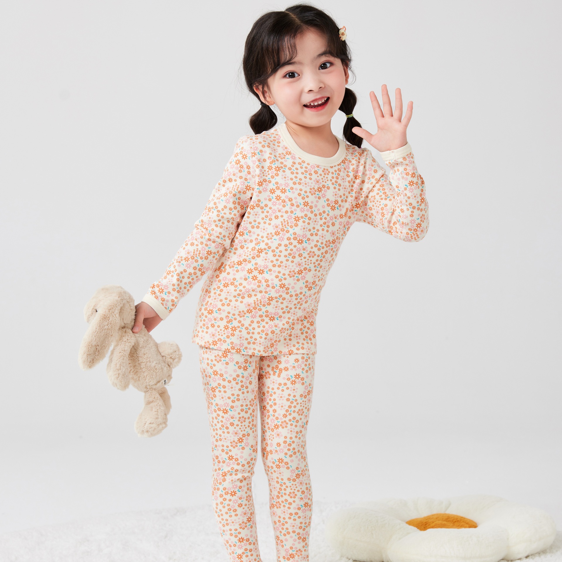 작은 꽃무늬 여아 가을옷 가을바지 무봉제 큰아이 보온 내의 세트 도매 순면 홈웨어 항균 흡습