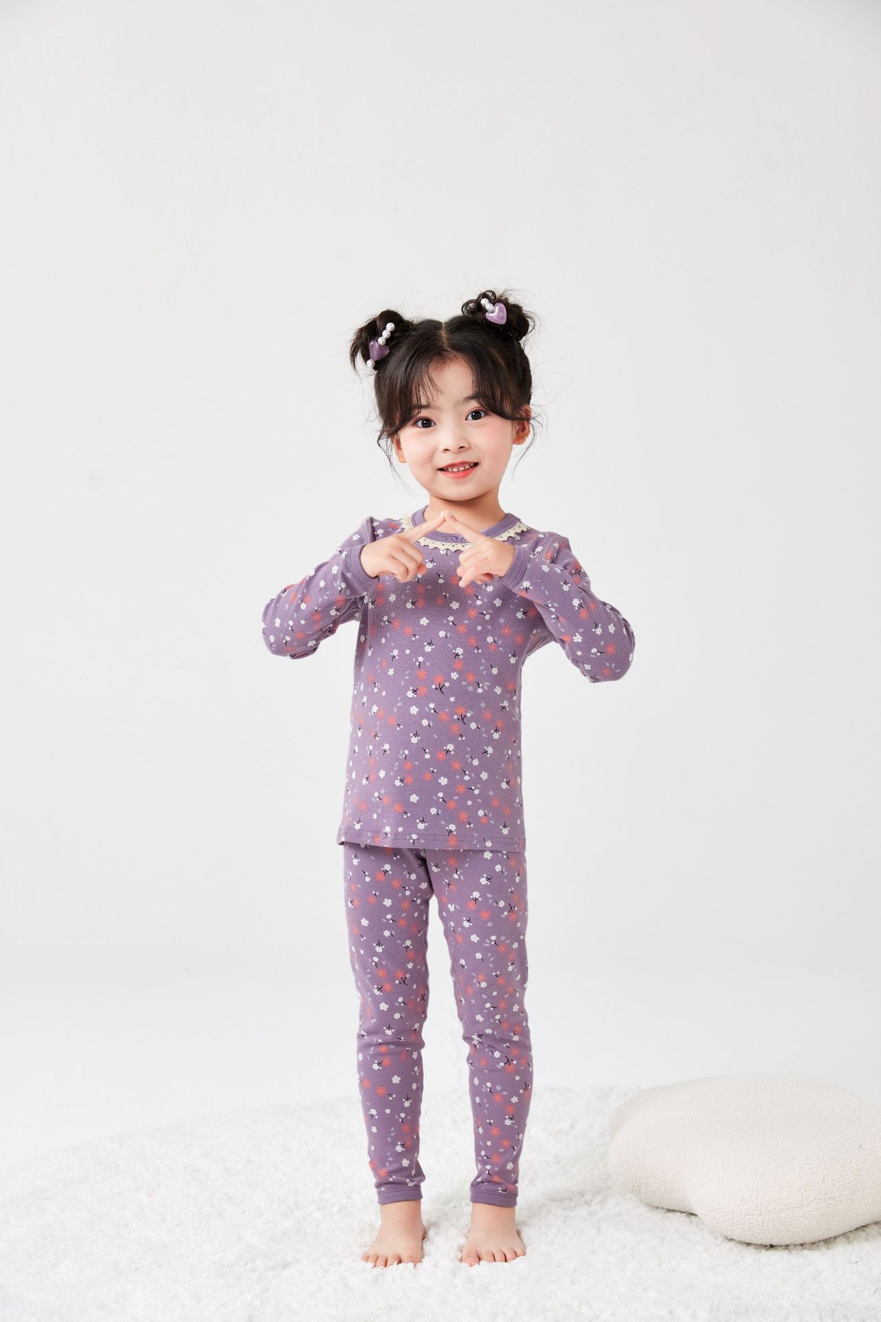 작은 꽃무늬 여아 가을옷 가을바지 무봉제 큰아이 보온 내의 세트 도매 순면 홈웨어 항균 흡습스토어 가기