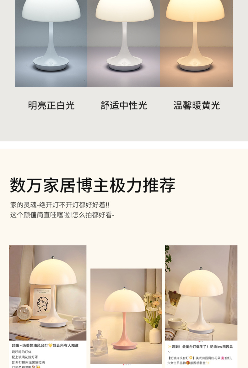 대관원 침실 침대 옆 램프 크림 스타일 버섯 테이블 램프 모던 심플 귀여운 소녀 장식 분위기 램프 479L스토어 가기