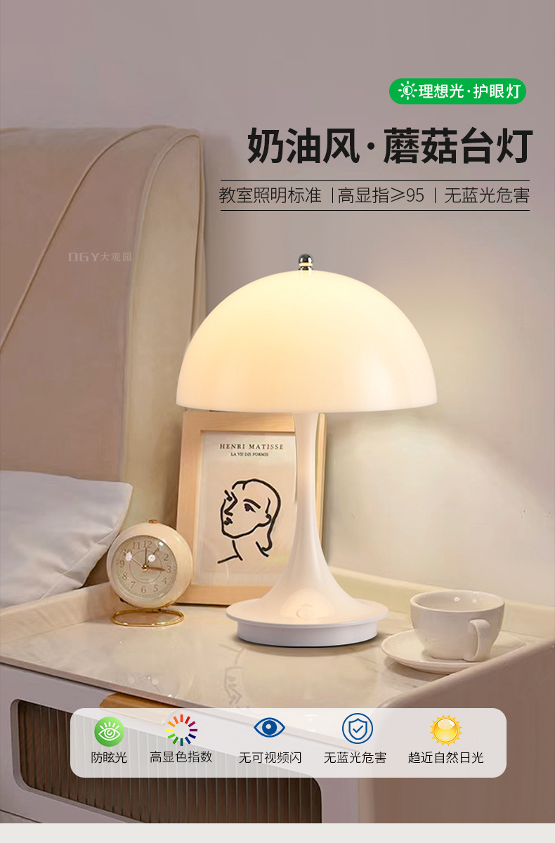 대관원 침실 침대 옆 램프 크림 스타일 버섯 테이블 램프 모던 심플 귀여운 소녀 장식 분위기 램프 479L