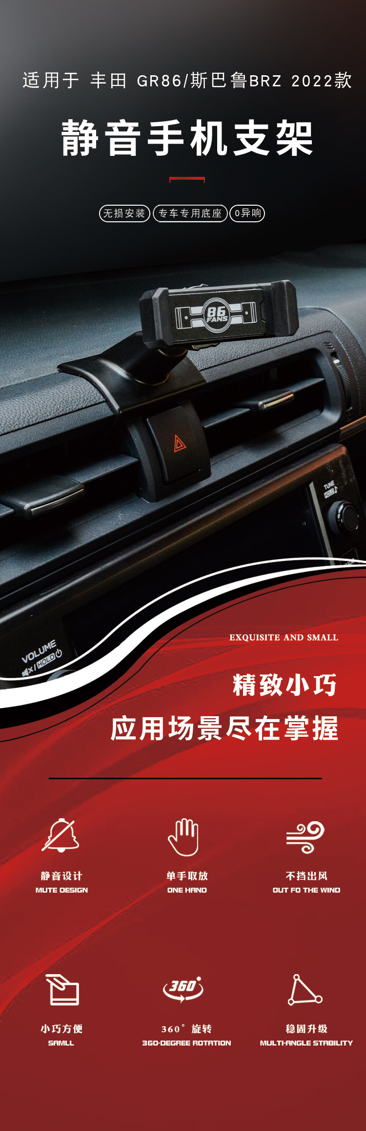 2022 Toyota GR86 ZN8 Subaru BRZ ZD8 자동차 휴대 전화 홀더 스냅 온 설치에 적합스토어 가기