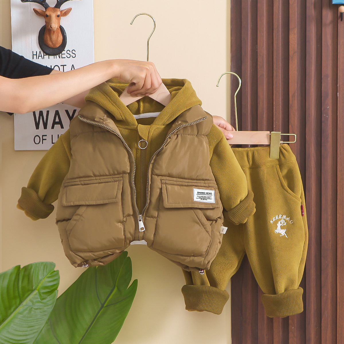 소년의 아기 기모 새끼 기모 면화 조끼 3 조각 세트 어린이 가을과 겨울 2 아기 옷 서양 패션 3 어린이스토어 가기