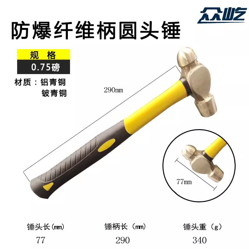 EX 수공구 알루미늄 청동 베릴륨 청동 무스파크 구리 망치 방폭 섬유 손잡이 원형 망치 방폭 니플 망치