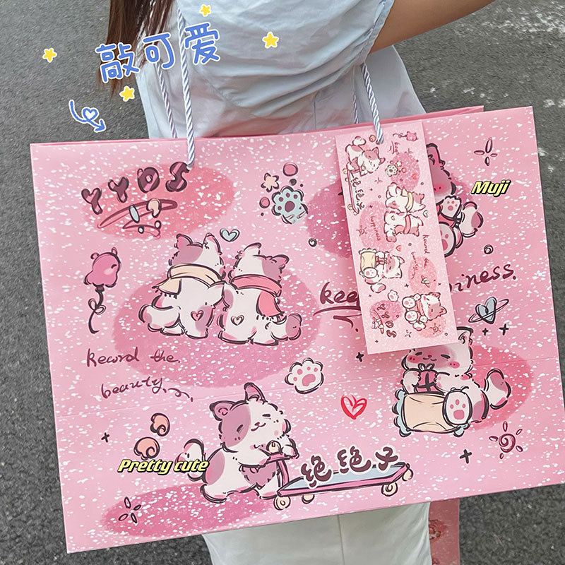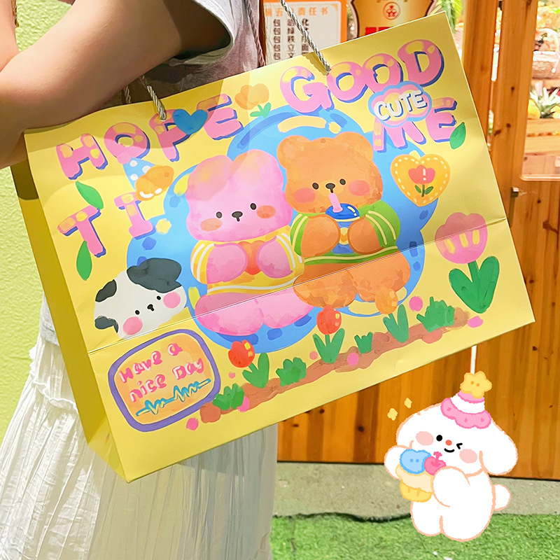 큰 어린이 날 선물 가방 생일 선물 포장 가방 만화 귀여운 휴대용 종이 가방 수평 보드 창조적 인 손 가방스토어 가기