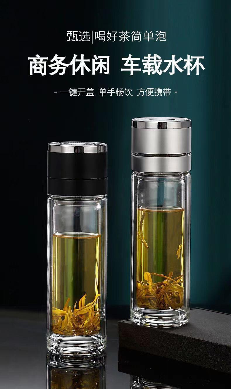원터치 빠른 개봉 차와 물 분리컵 고붕규산 이중 유리컵 고온 내성 물컵 범용 원피스 배송스토어 가기