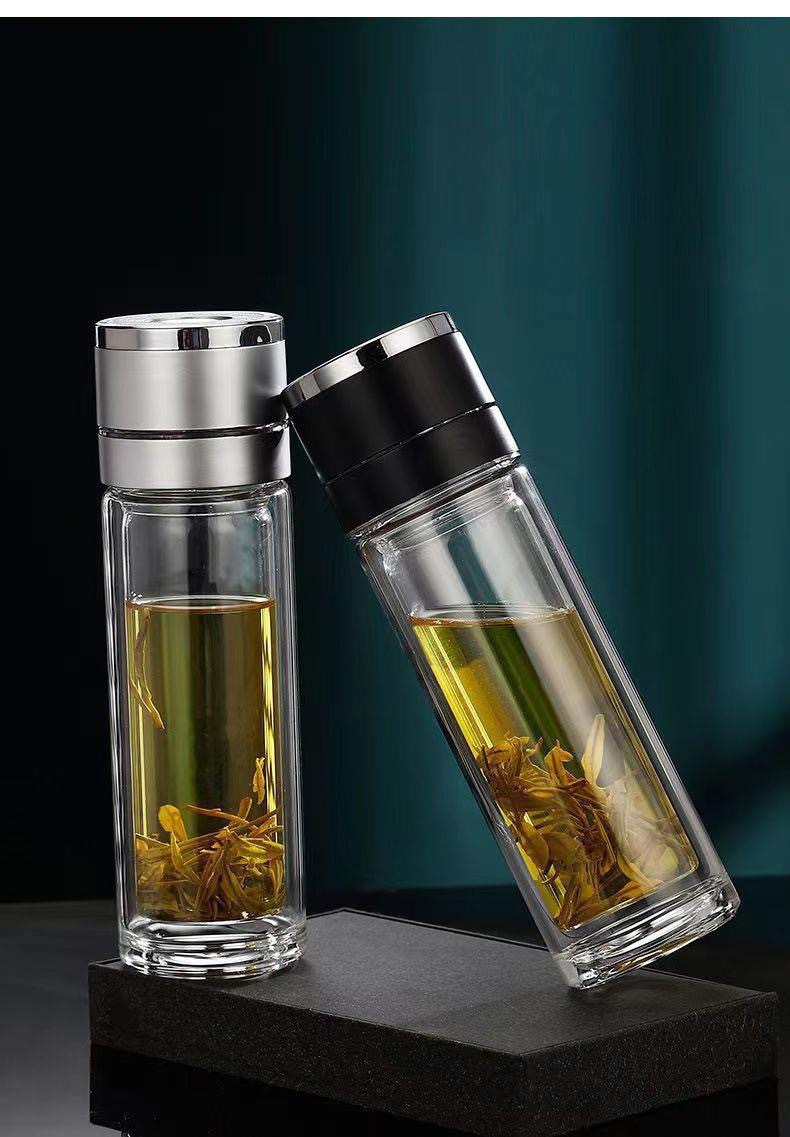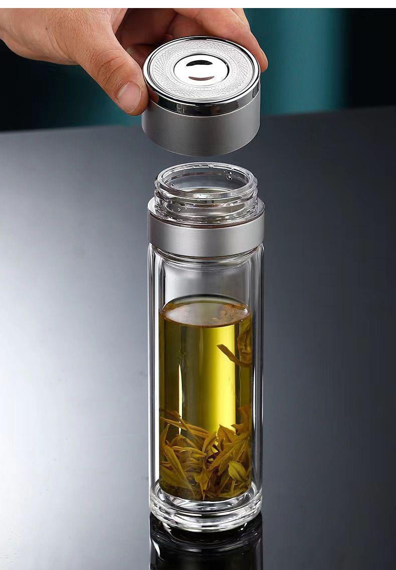 원터치 빠른 개봉 차와 물 분리컵 고붕규산 이중 유리컵 고온 내성 물컵 범용 원피스 배송