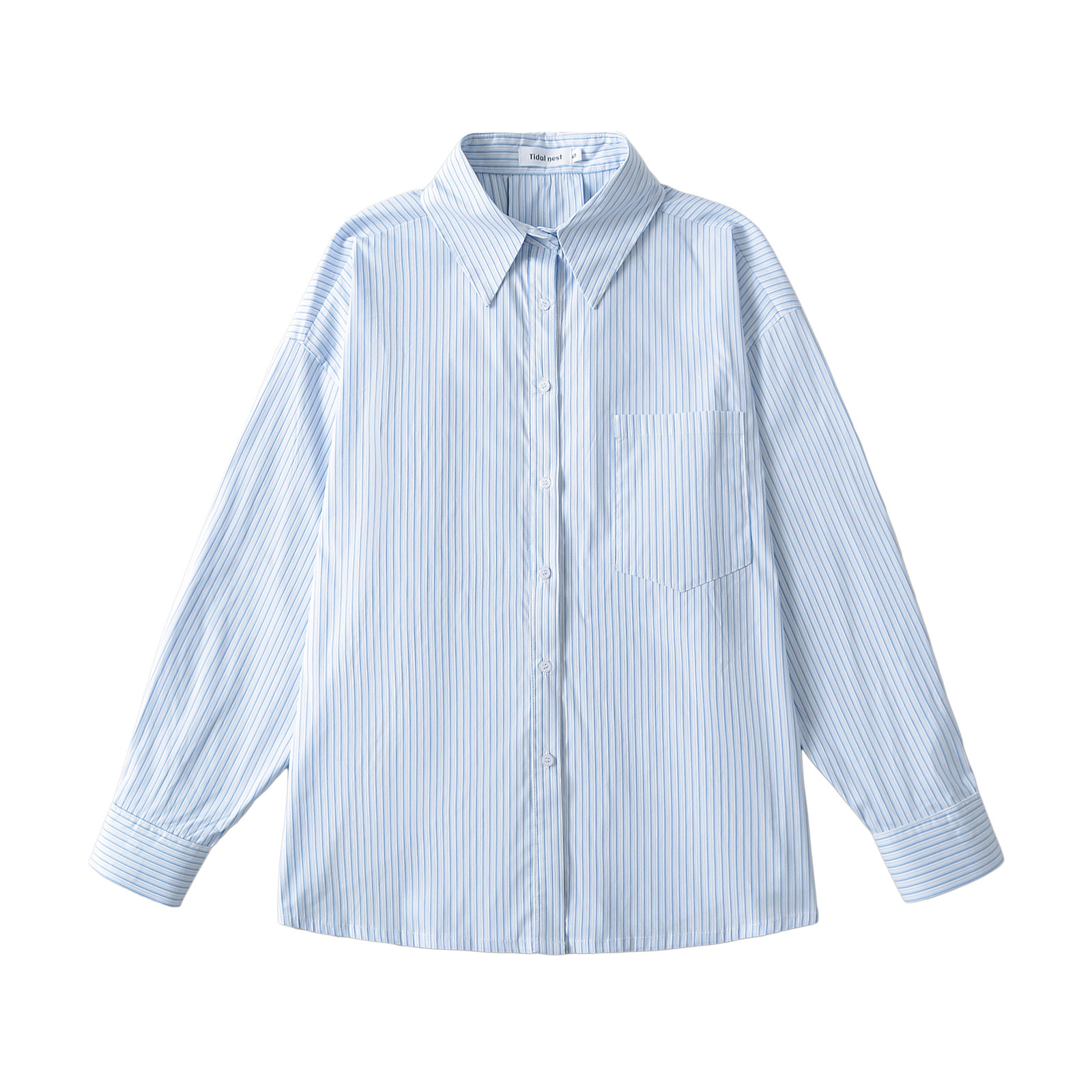 블루 스트라이프 썬 스크린 긴팔 셔츠 여자의 2024 여름 새로운 스타일 얇은 게으른 스타일 느슨한 캐주얼 코트 탑스토어 가기