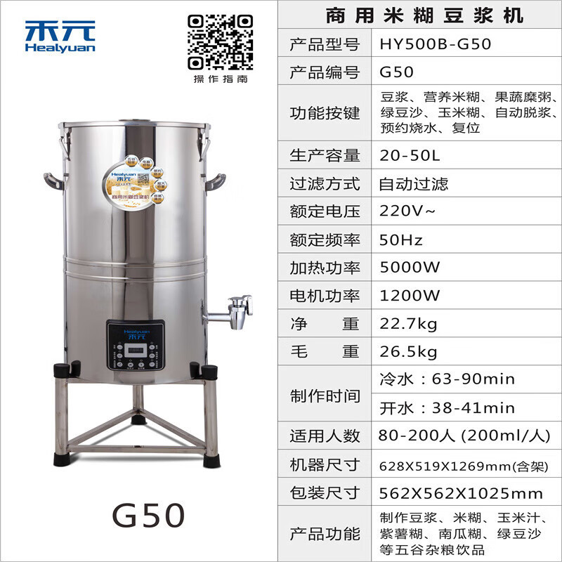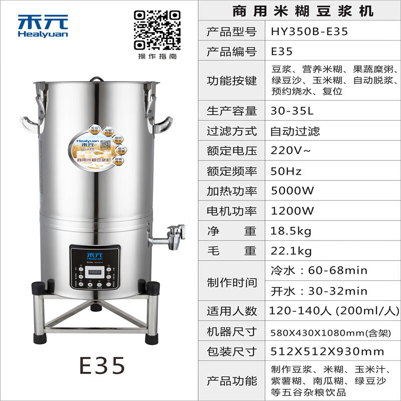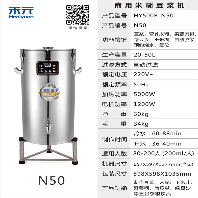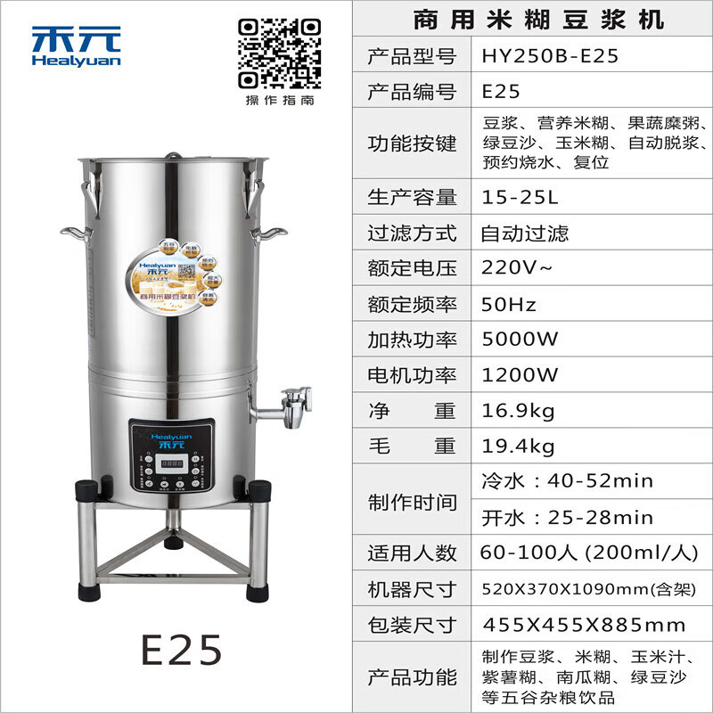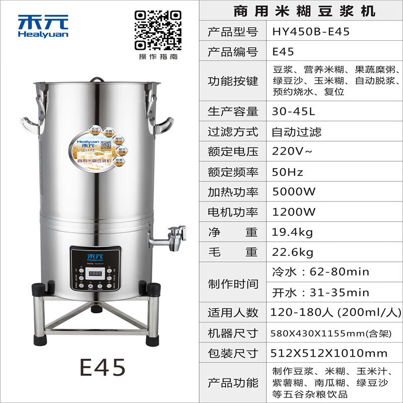 Heyuan 상업용 두유 기계 아침 식사 상점 대용량 자동 스테인레스 스틸 통합 저소음 연삭 및 요리 두유 기계스토어 가기