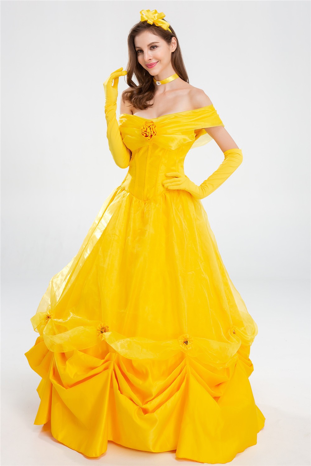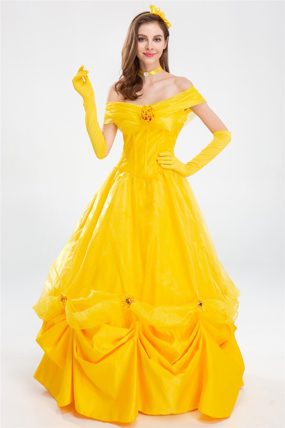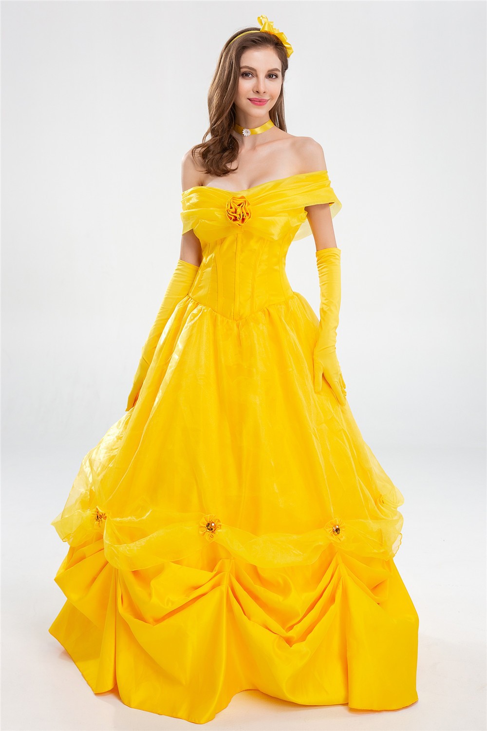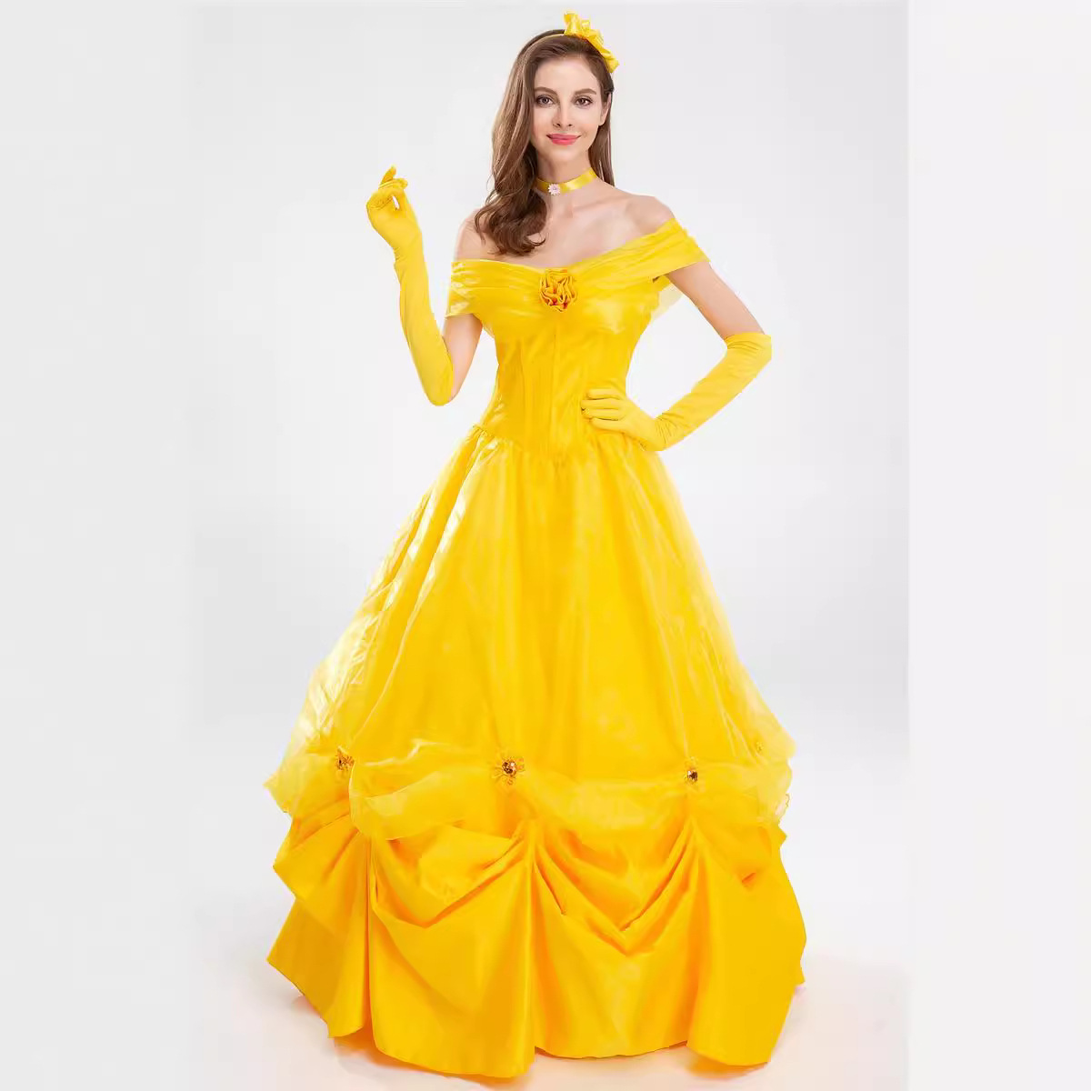 할로윈 COS 미녀와 야수 요정 플레이 공주 벨 성인 여성 노란색 긴 원피스 파티 의상