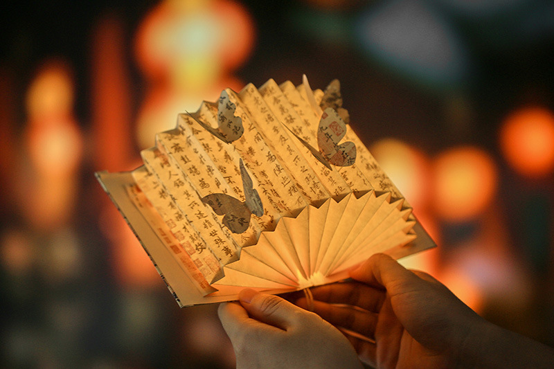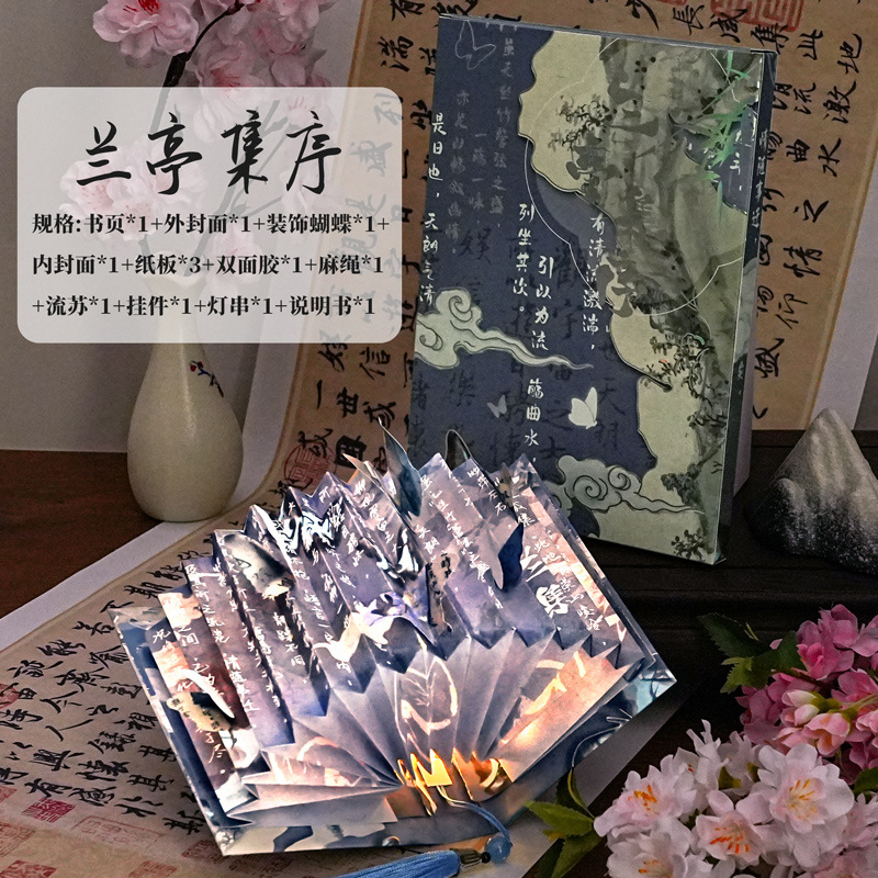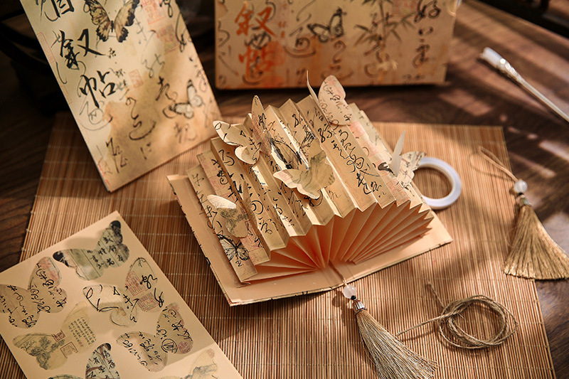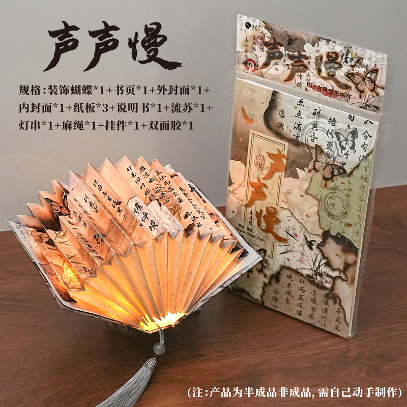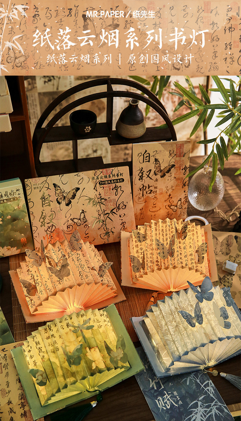 종이 떨어지는 구름과 연기 고대 스타일 나비 서예 책 램프 국가 스타일 종이 조각 램프 테이블 옆 장식품 diy 3 차원 분위기 야간 조명