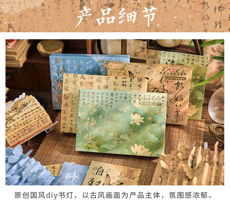 종이 떨어지는 구름과 연기 고대 스타일 나비 서예 책 램프 국가 스타일 종이 조각 램프 테이블 옆 장식품 diy 3 차원 분위기 야간 조명스토어 가기