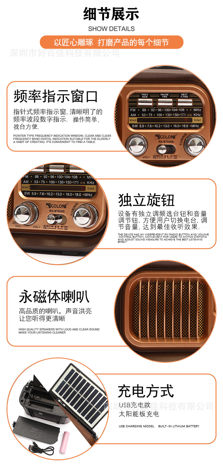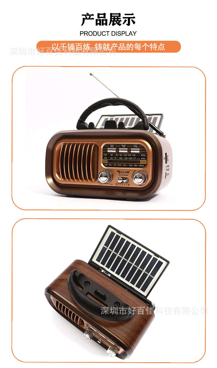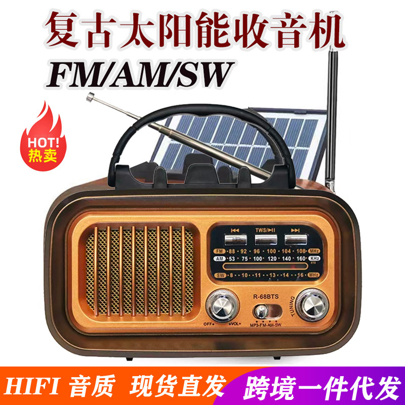 핫 세일 아마존 휴대용 다기능 3 밴드 레트로 태양 라디오 카드 블루투스 스테레오