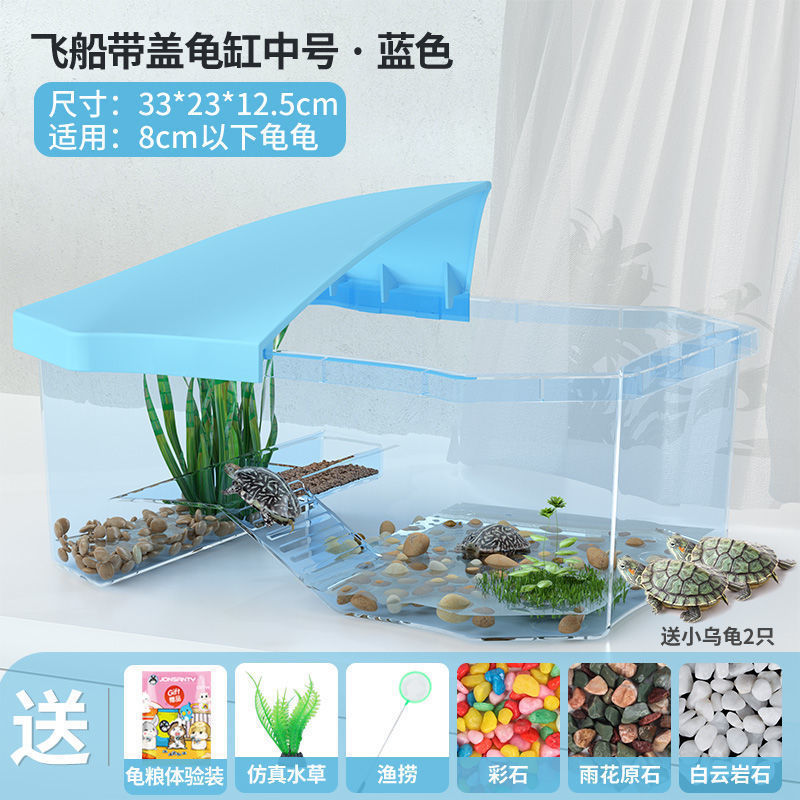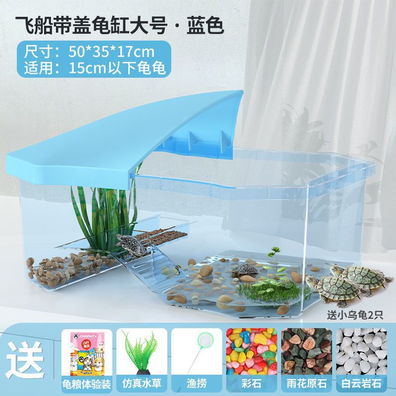 • [업그레이드 커버] 대형 우주선 탱크 블루 + 선물 패키지 + 거북이 2마리