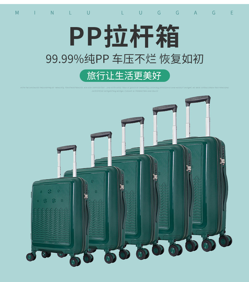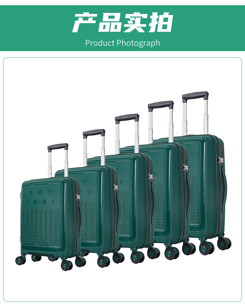 맞춤형 오일 그린 PP 트롤리 케이스 5피스 세트 광택 젖빛 공정 범용 휠 탑승 케이스 국경 간 대외 무역 공급스토어 가기