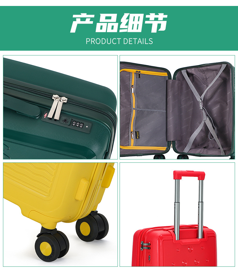 맞춤형 오일 그린 PP 트롤리 케이스 5피스 세트 광택 젖빛 공정 범용 휠 탑승 케이스 국경 간 대외 무역 공급