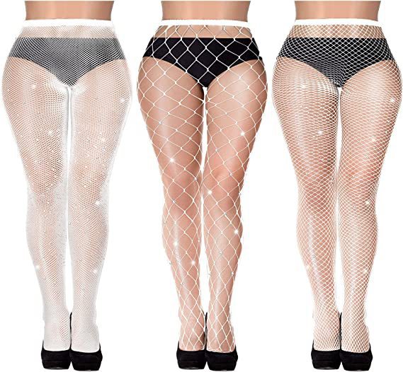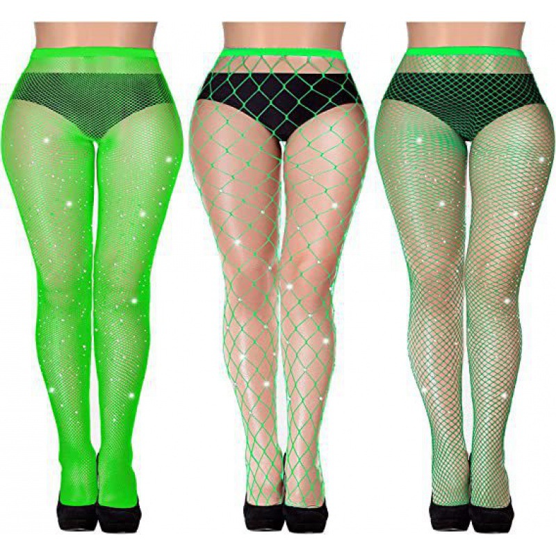 크로스보더 유럽 및 미국 섹시한 대형 사이즈 핫 다이아몬드 망사 스타킹, 소형, 중형 및 대형 망사 조합 세트, 얇은 컬러풀한 바닥 스타킹, 망사 스타킹스토어 가기