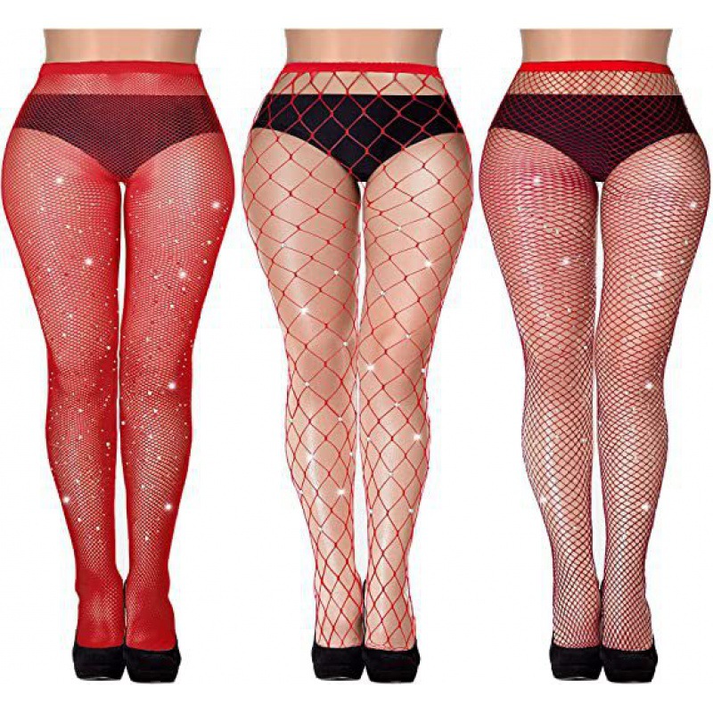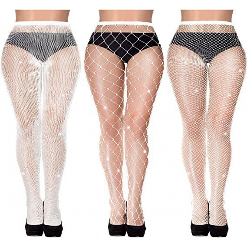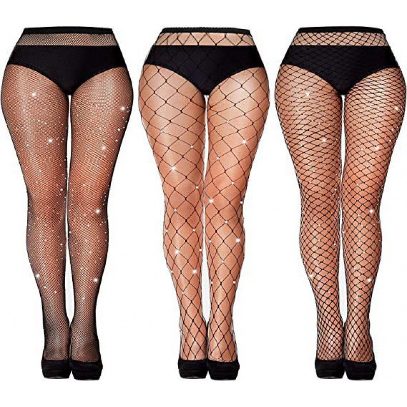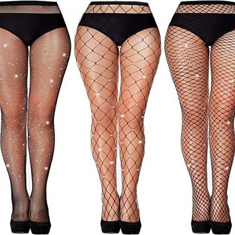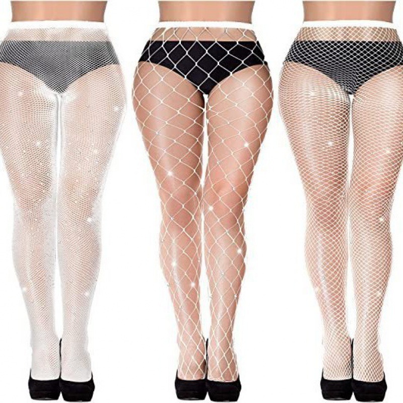 크로스보더 유럽 및 미국 섹시한 대형 사이즈 핫 다이아몬드 망사 스타킹, 소형, 중형 및 대형 망사 조합 세트, 얇은 컬러풀한 바닥 스타킹, 망사 스타킹