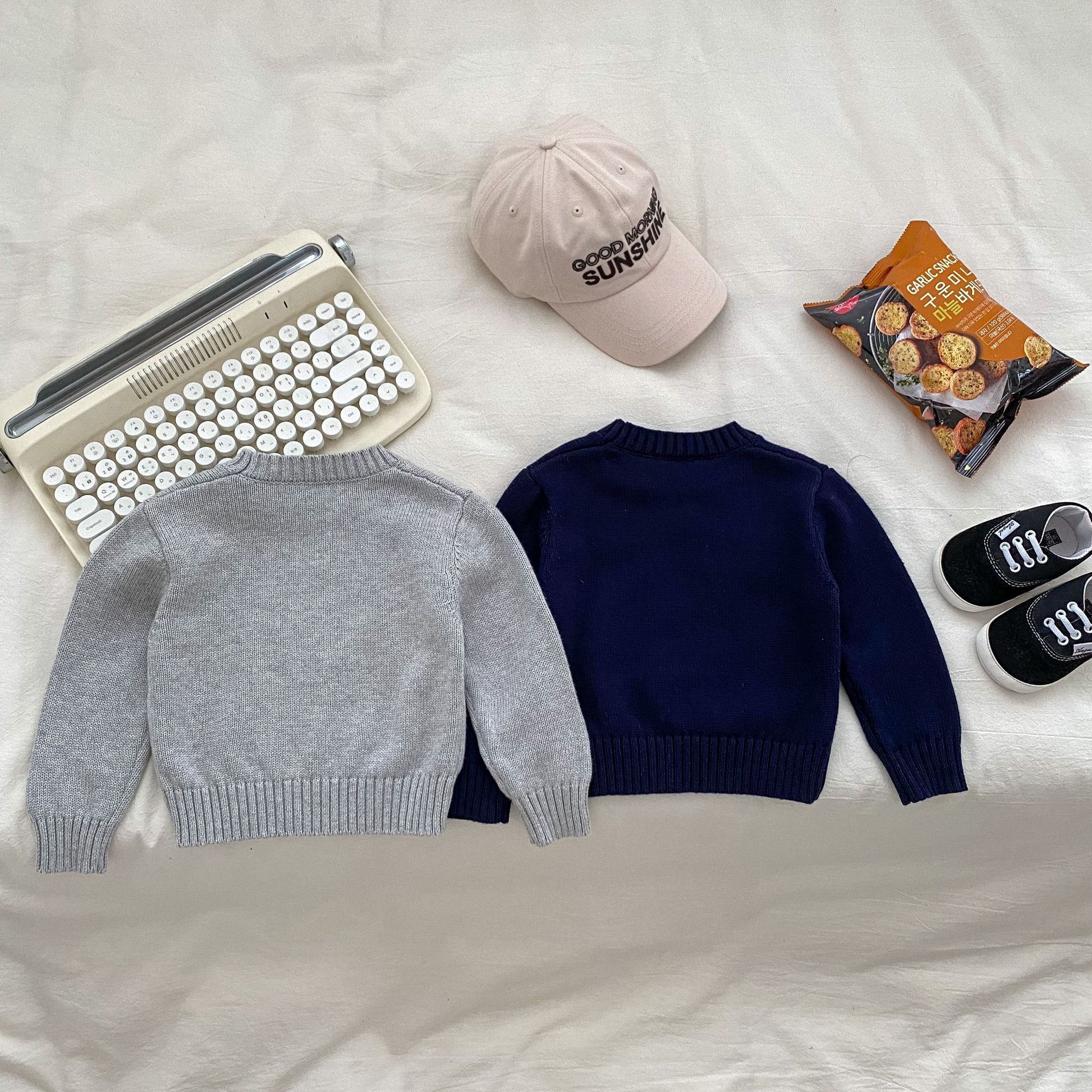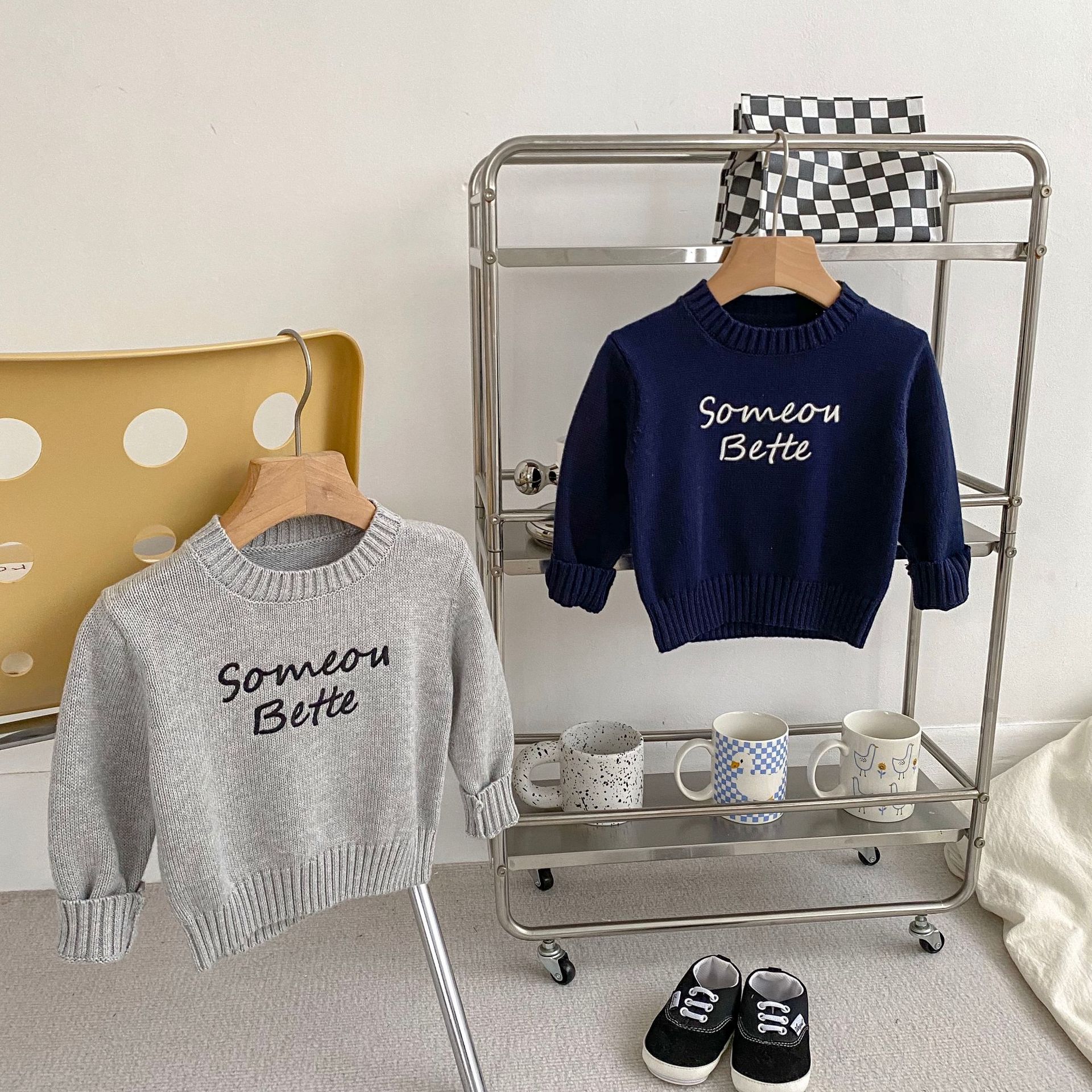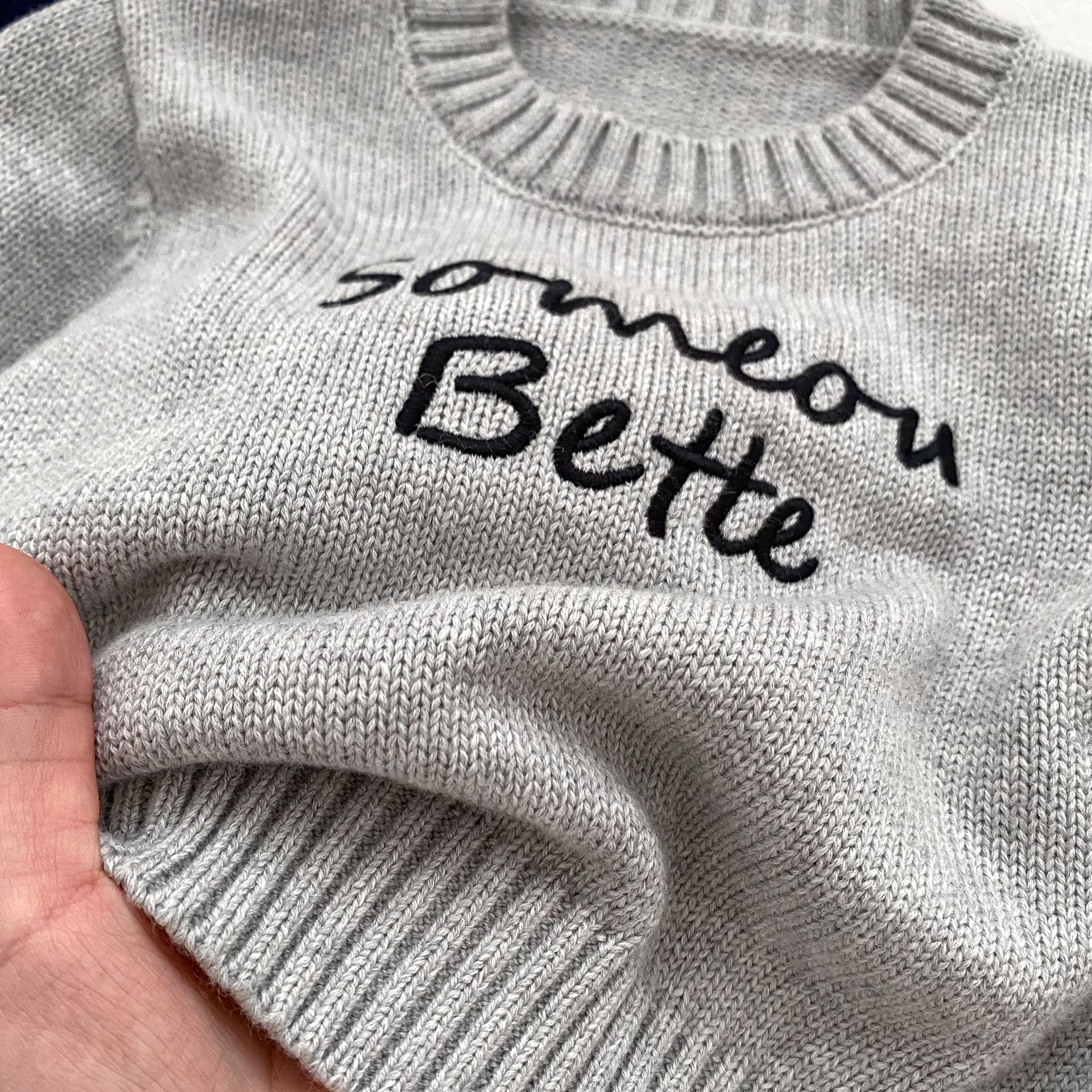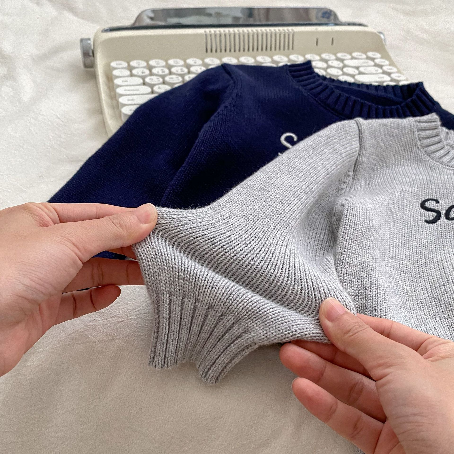 2024 새로운 어린이 캐주얼 올 매치 레터 니트 탑 크루 넥 스웨터 풀오버 청바지 투피스 세트스토어 가기
