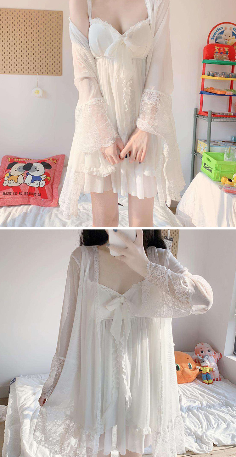 플러스 사이즈 국경 간 섹시 슬링 나이트 가운 가슴 패드 여성용 레이스 나이트 가운 섹스 유혹 파자마 홈 의류 세트
