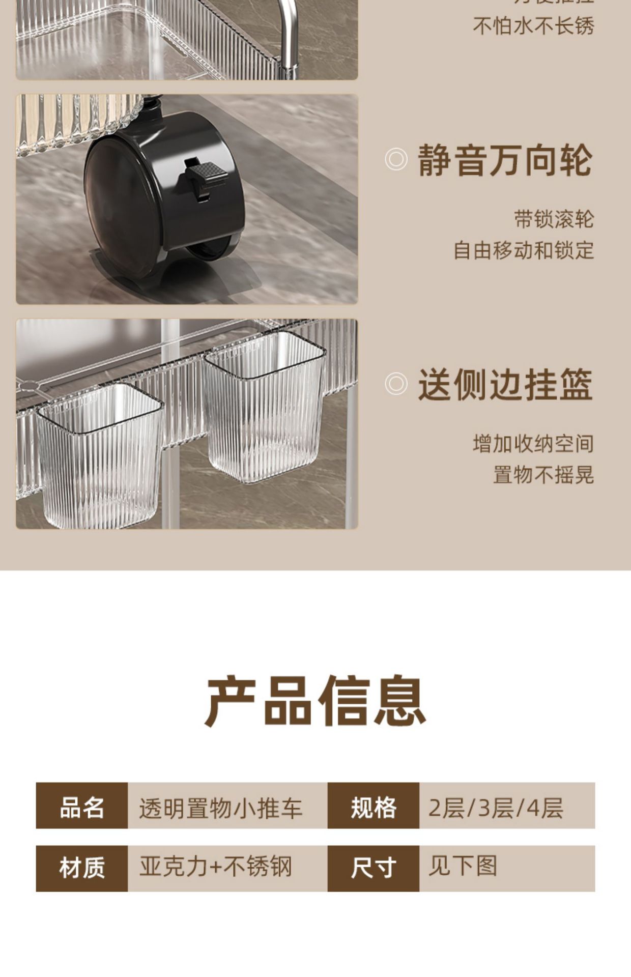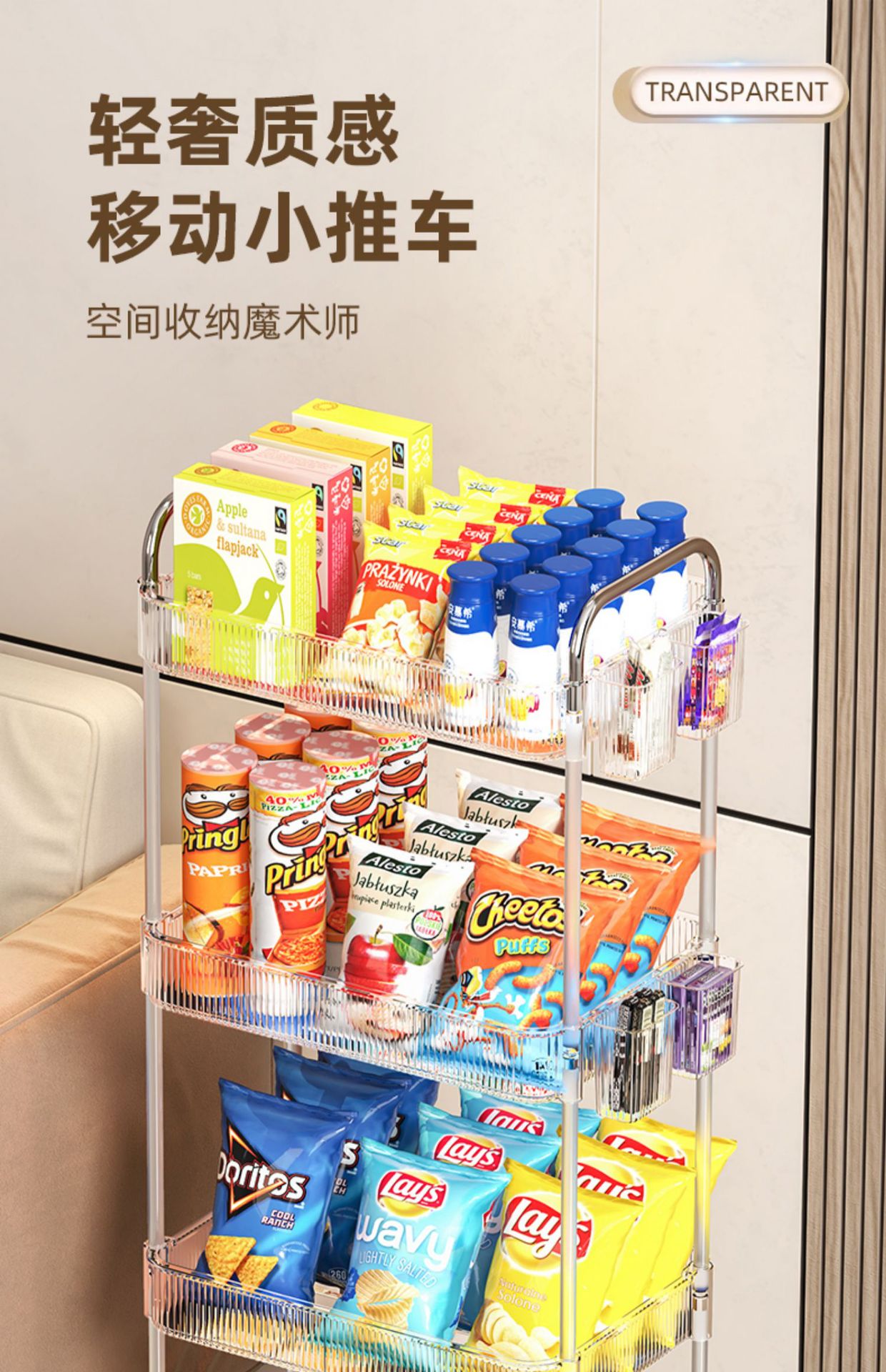 아크릴 스낵 카트 저장 선반 바닥 모바일 욕실 화장실 저장 상자 다층 화장품 캐비닛스토어 가기