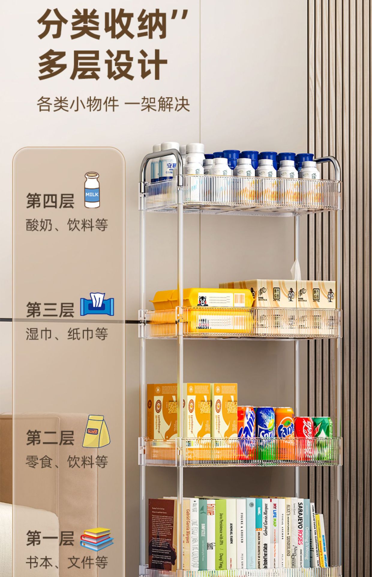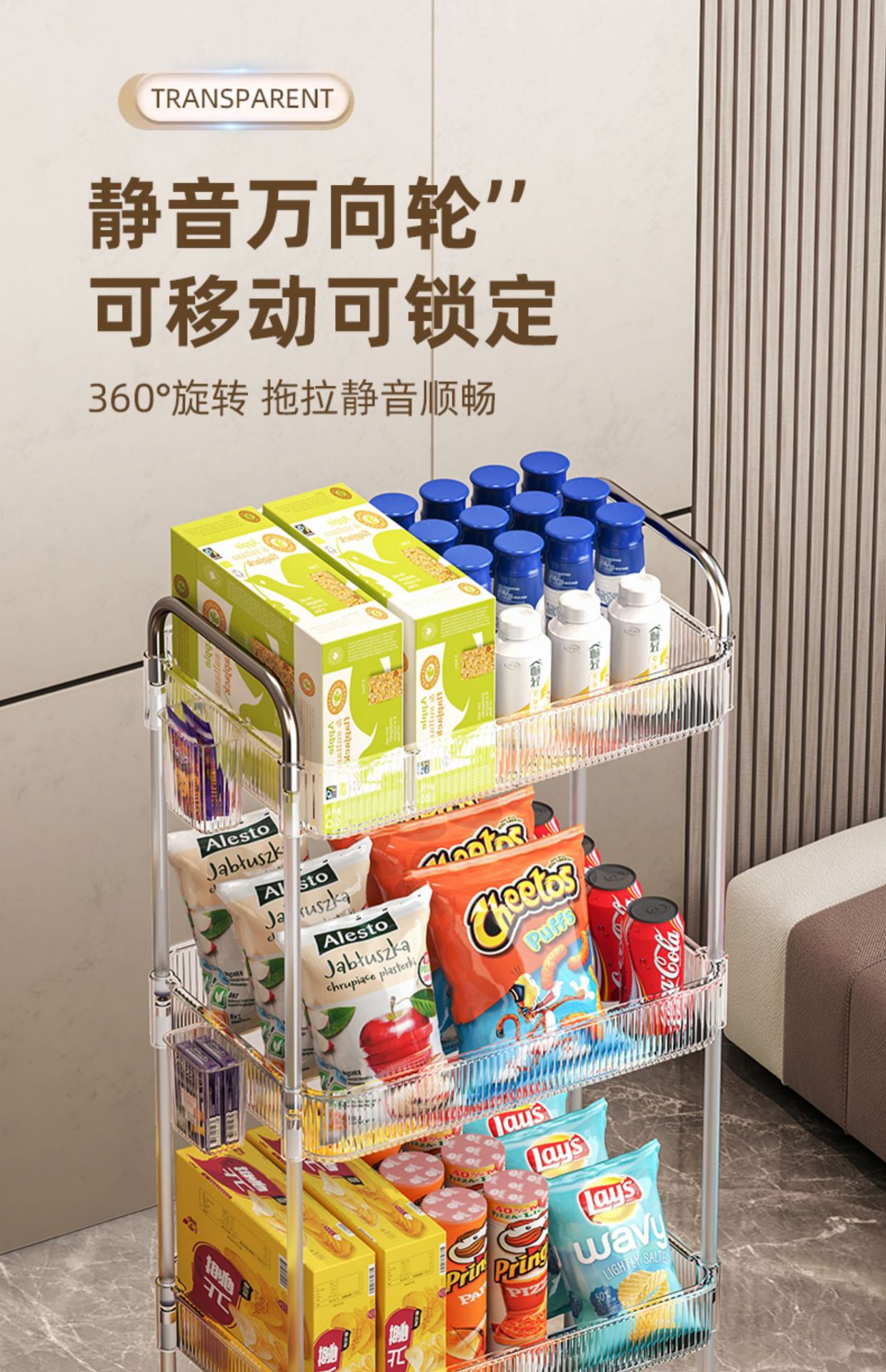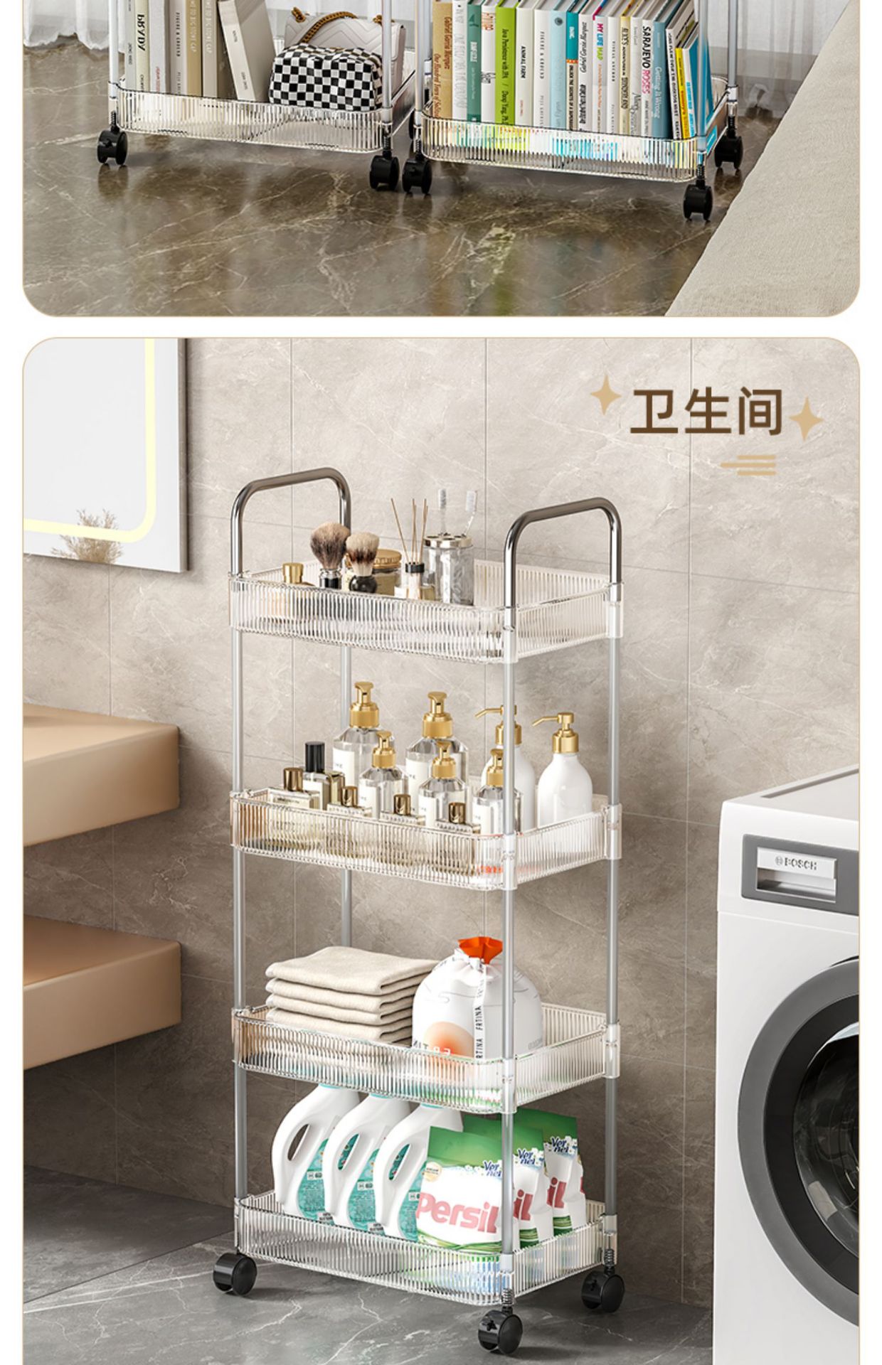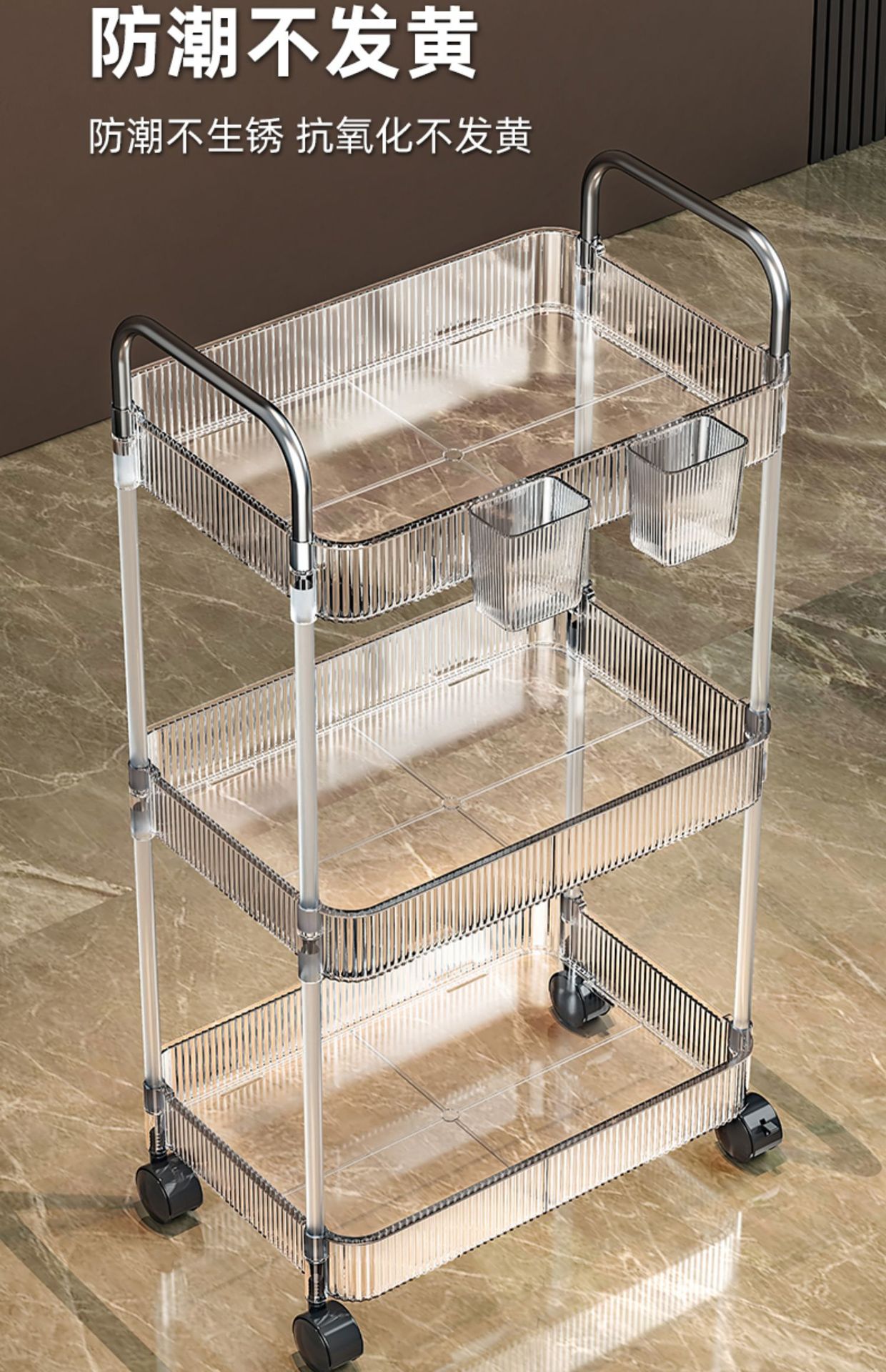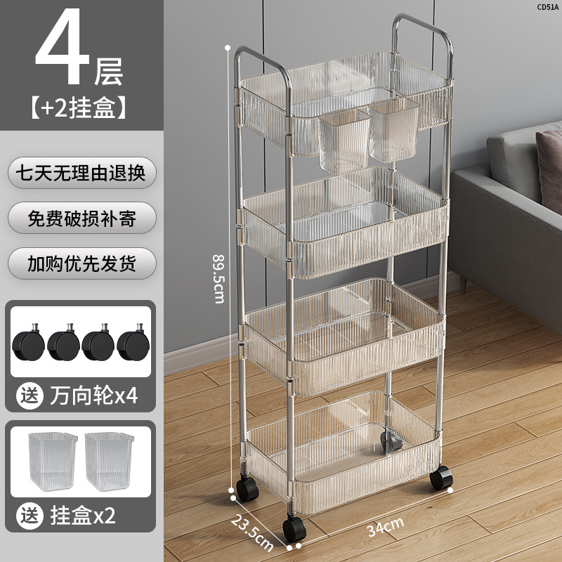 아크릴 스낵 카트 저장 선반 바닥 모바일 욕실 화장실 저장 상자 다층 화장품 캐비닛