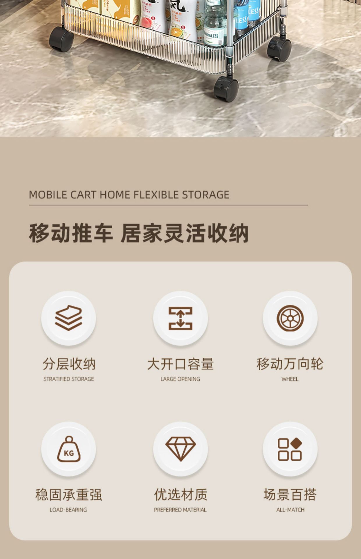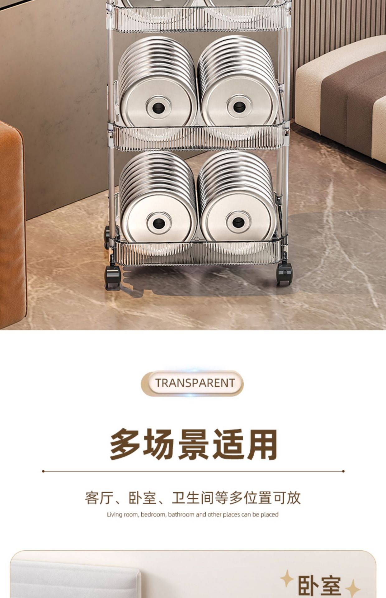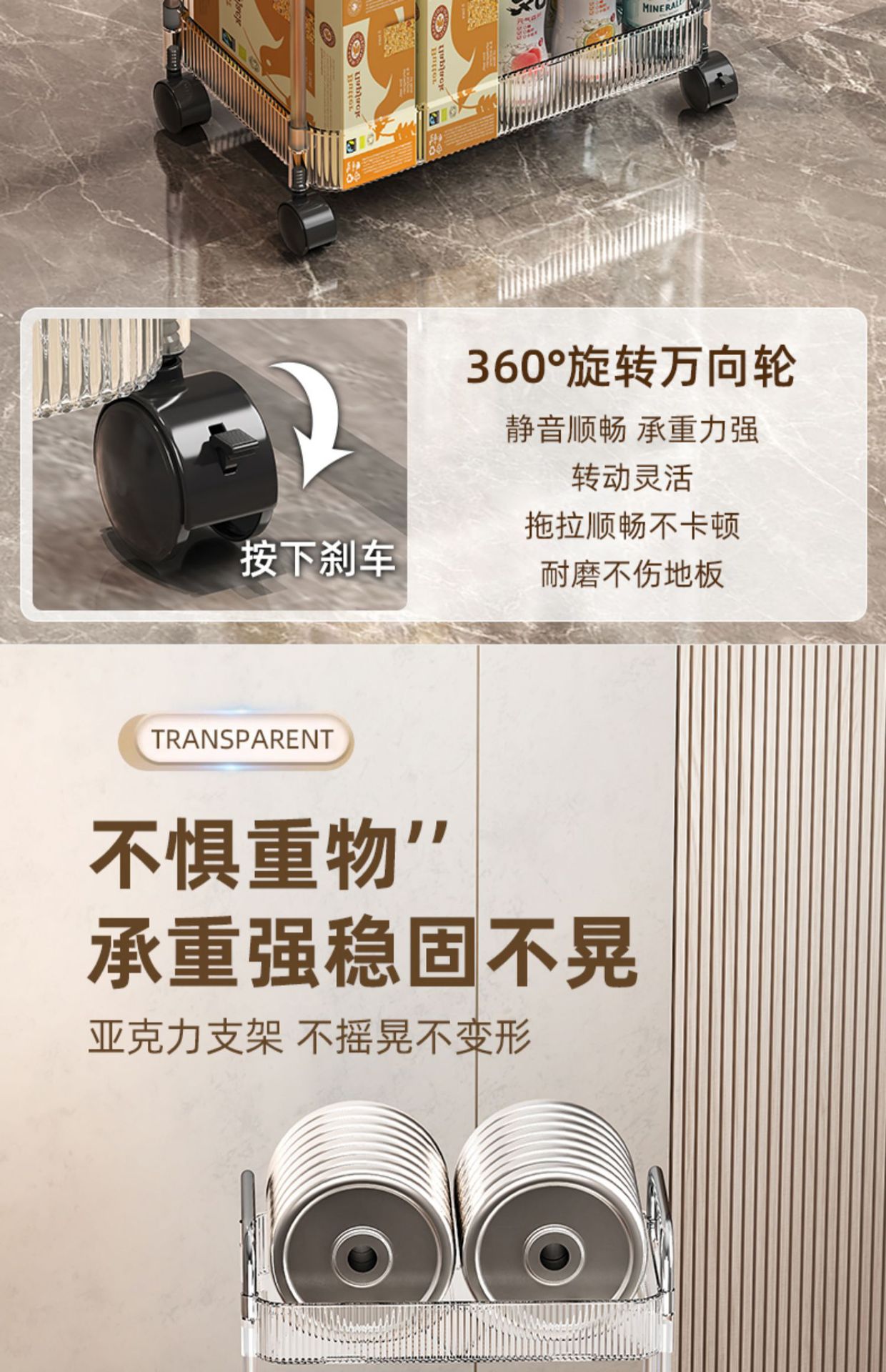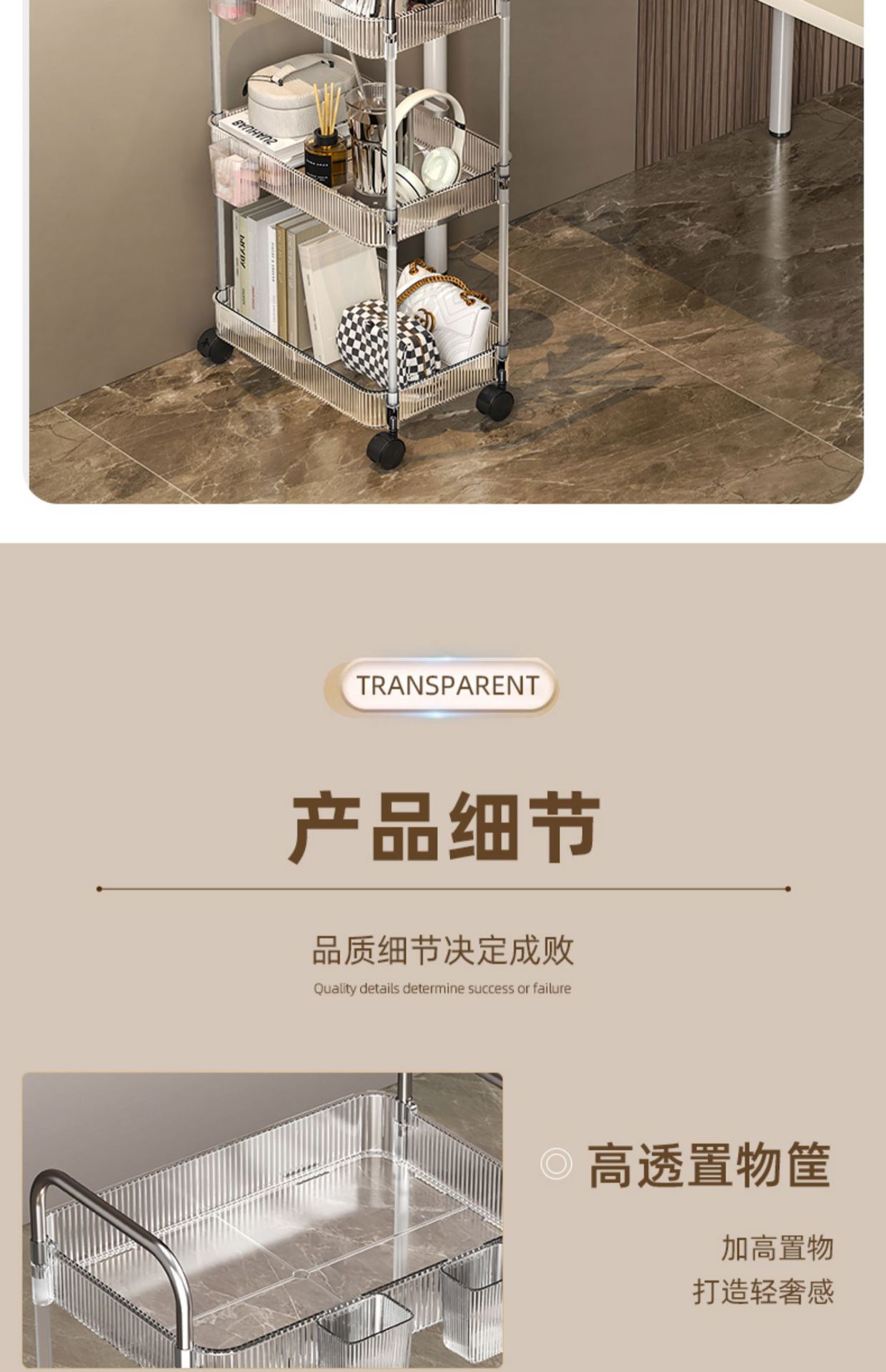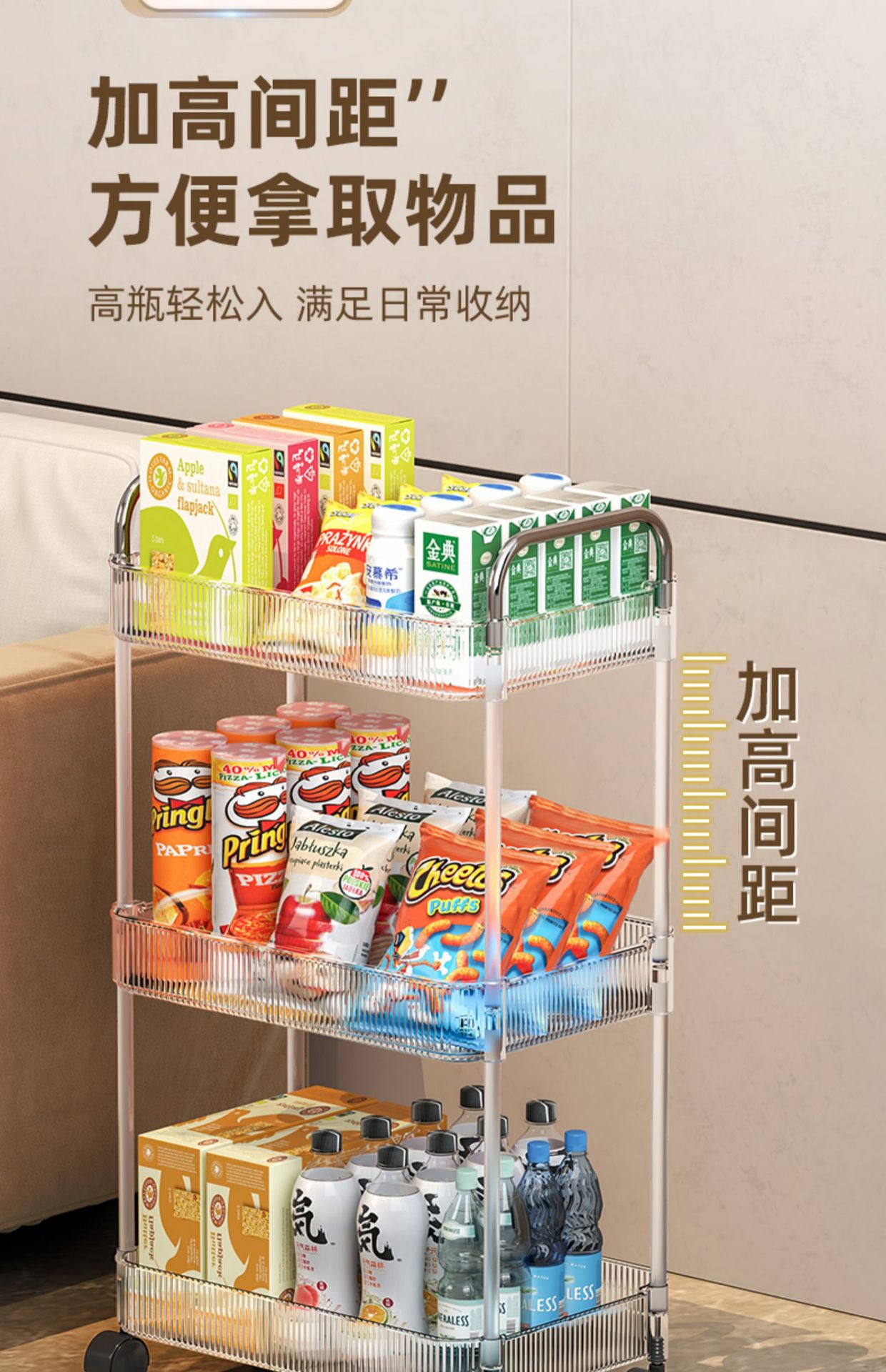 아크릴 스낵 카트 저장 선반 바닥 모바일 욕실 화장실 저장 상자 다층 화장품 캐비닛