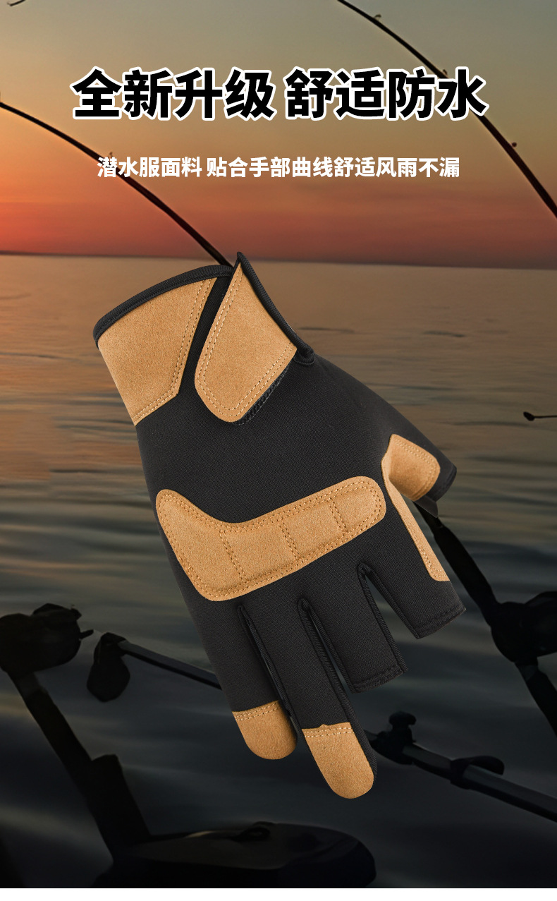 새로운 낚시 장갑 누출 세 손가락 남녀 전문 겨울 방수 비 스틱 미끼 미끄럼 방지 두꺼운 바위 낚시 장갑