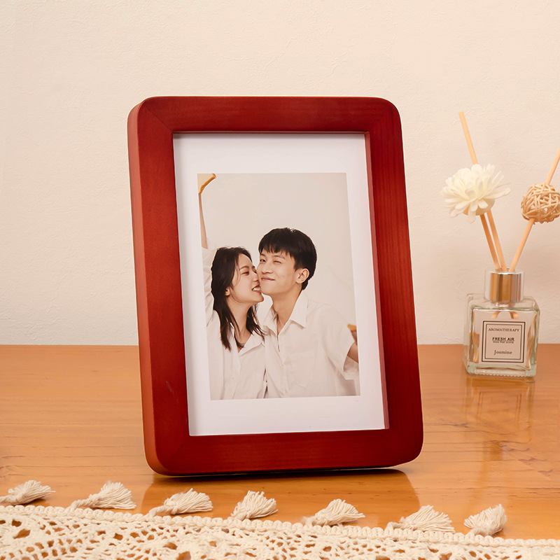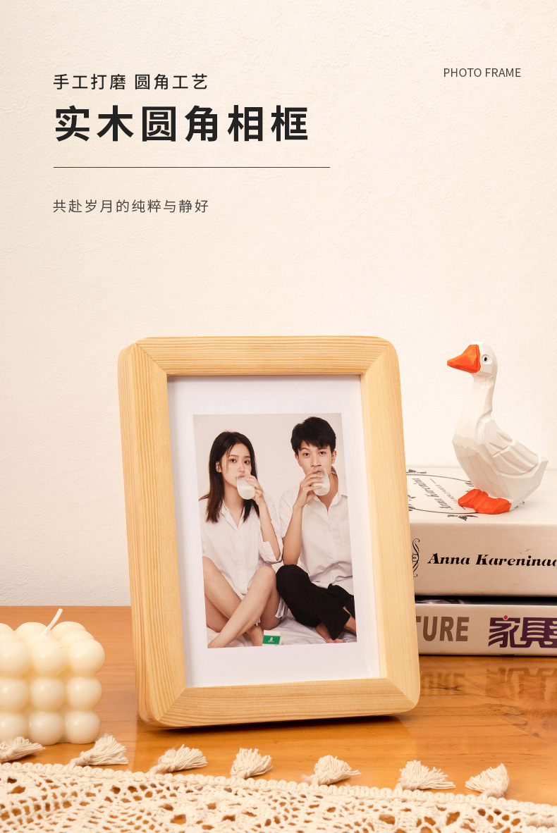 원목 고급 사진 액자 도매 벽걸이 액자 장식 액자 둥근 모서리 액자 호두색 A 4inch DIY 사진
