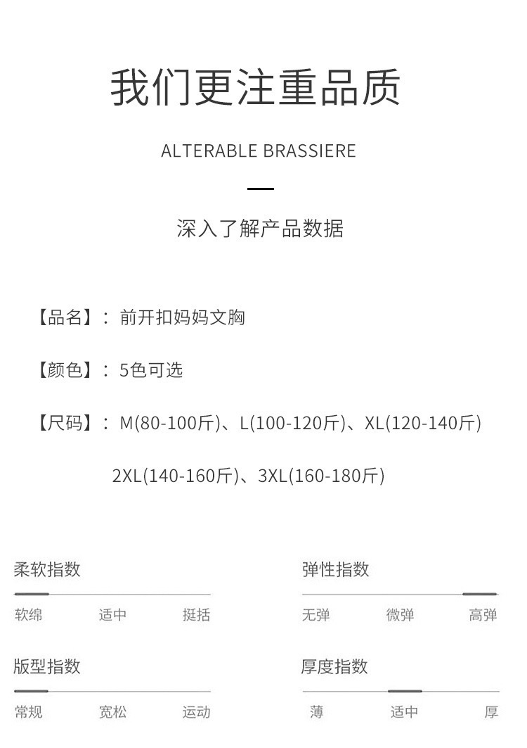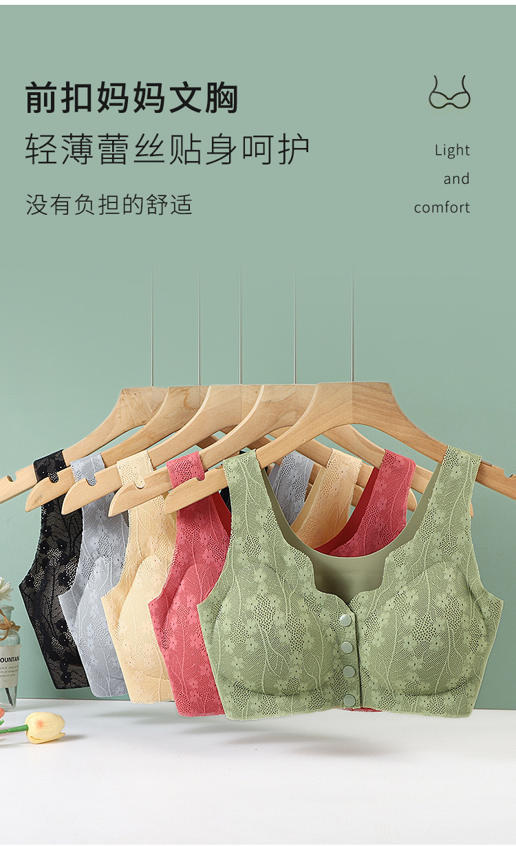 전면 개방 버클 중년 및 노인 어머니의 브래지어 처짐 방지 푸시 업 비 림리스 경량 통풍 및 비 마킹 속옷스토어 가기