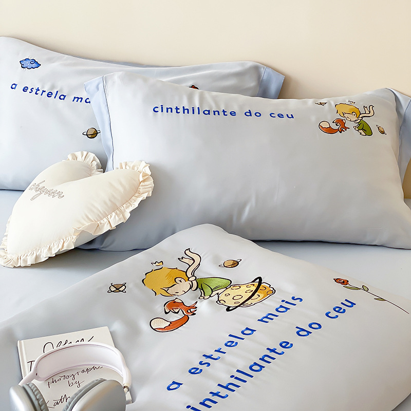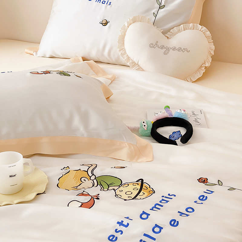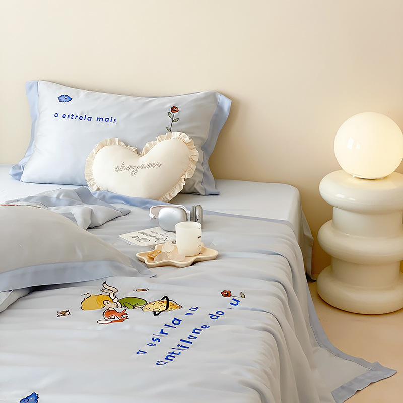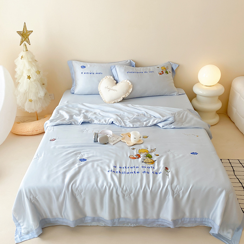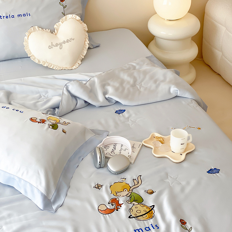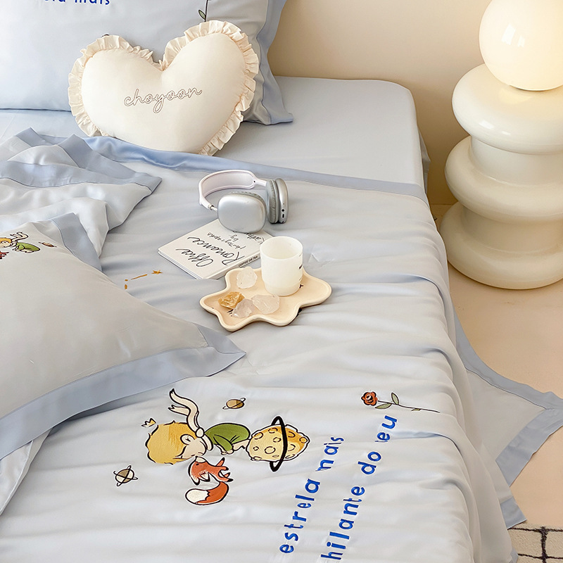 2024 새로운 80S Lanjing Tencel 절묘한 자수 여름 이불 어린 왕자 에어컨 이불 4 피스 세트스토어 가기
