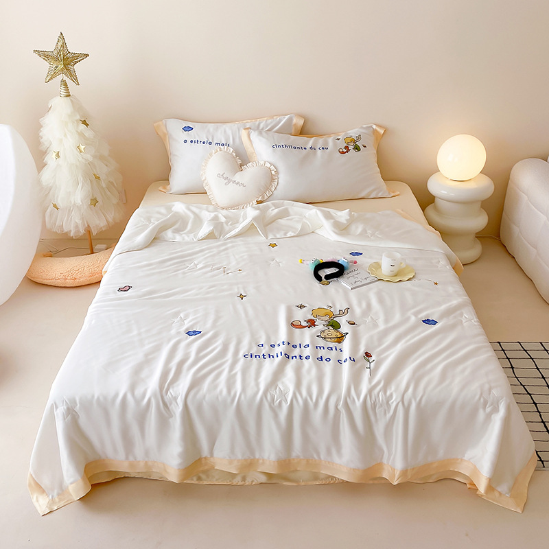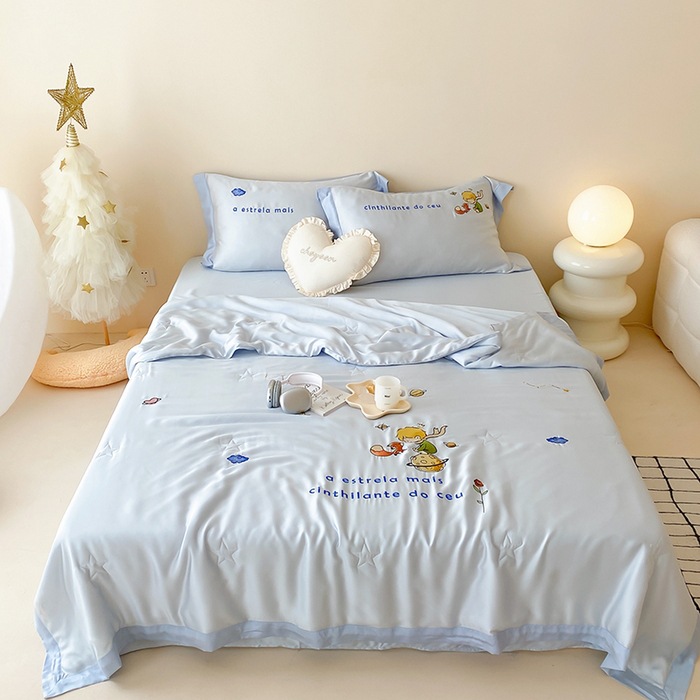 2024 새로운 80S Lanjing Tencel 절묘한 자수 여름 이불 어린 왕자 에어컨 이불 4 피스 세트